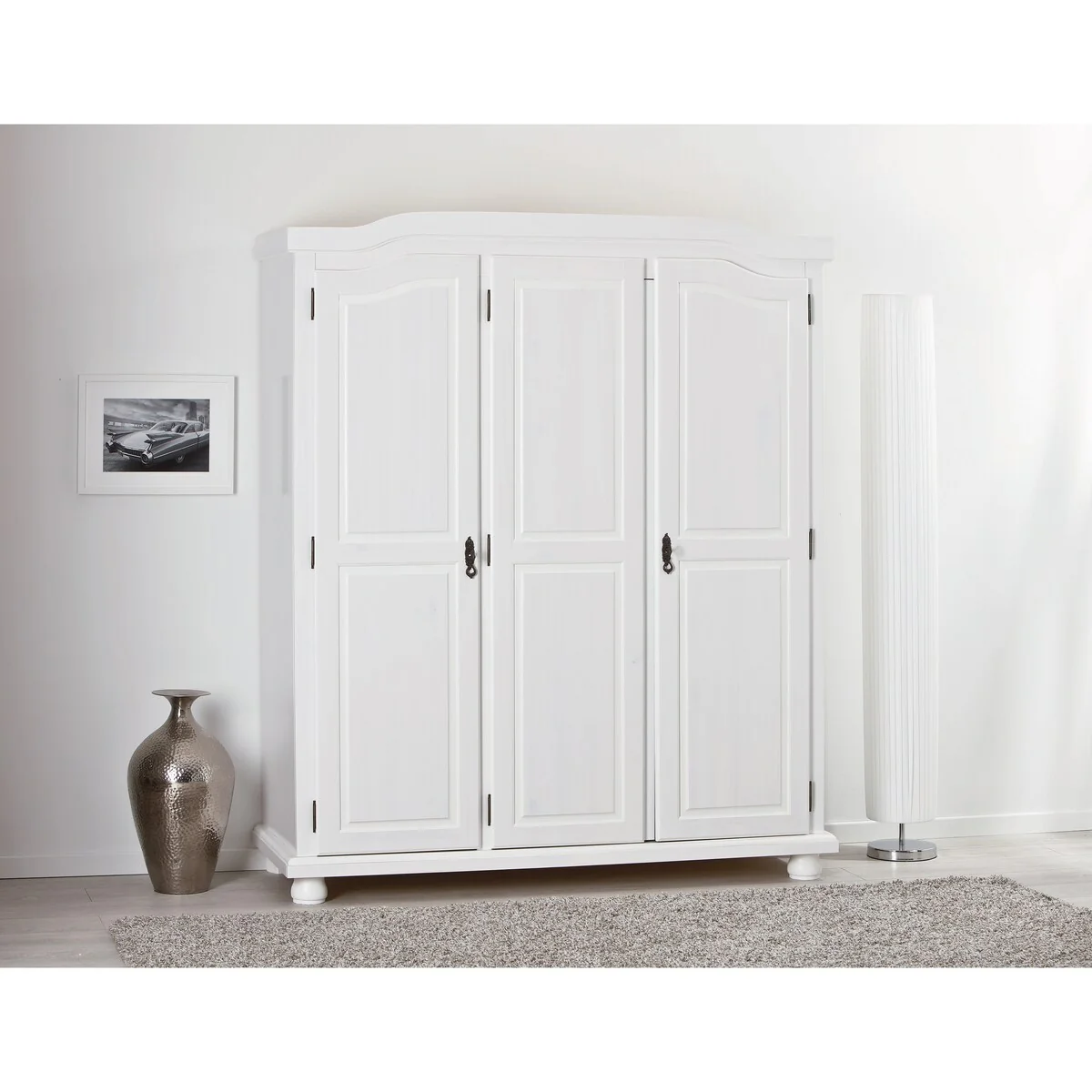 Solid Wood Bastian Wardrobe With Lock, Whitewash