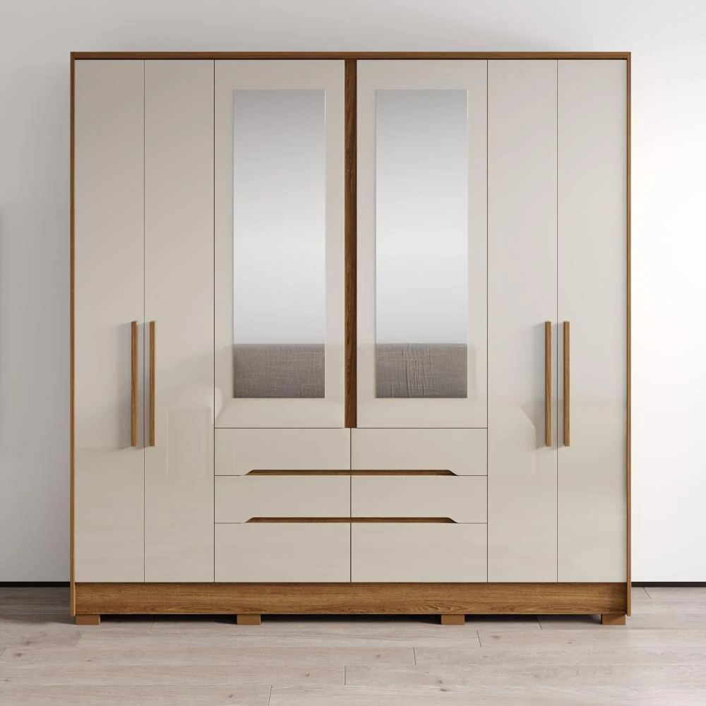 3-Door Wooden Storage Desk Wardrobewith Shelves and 3 Drawers