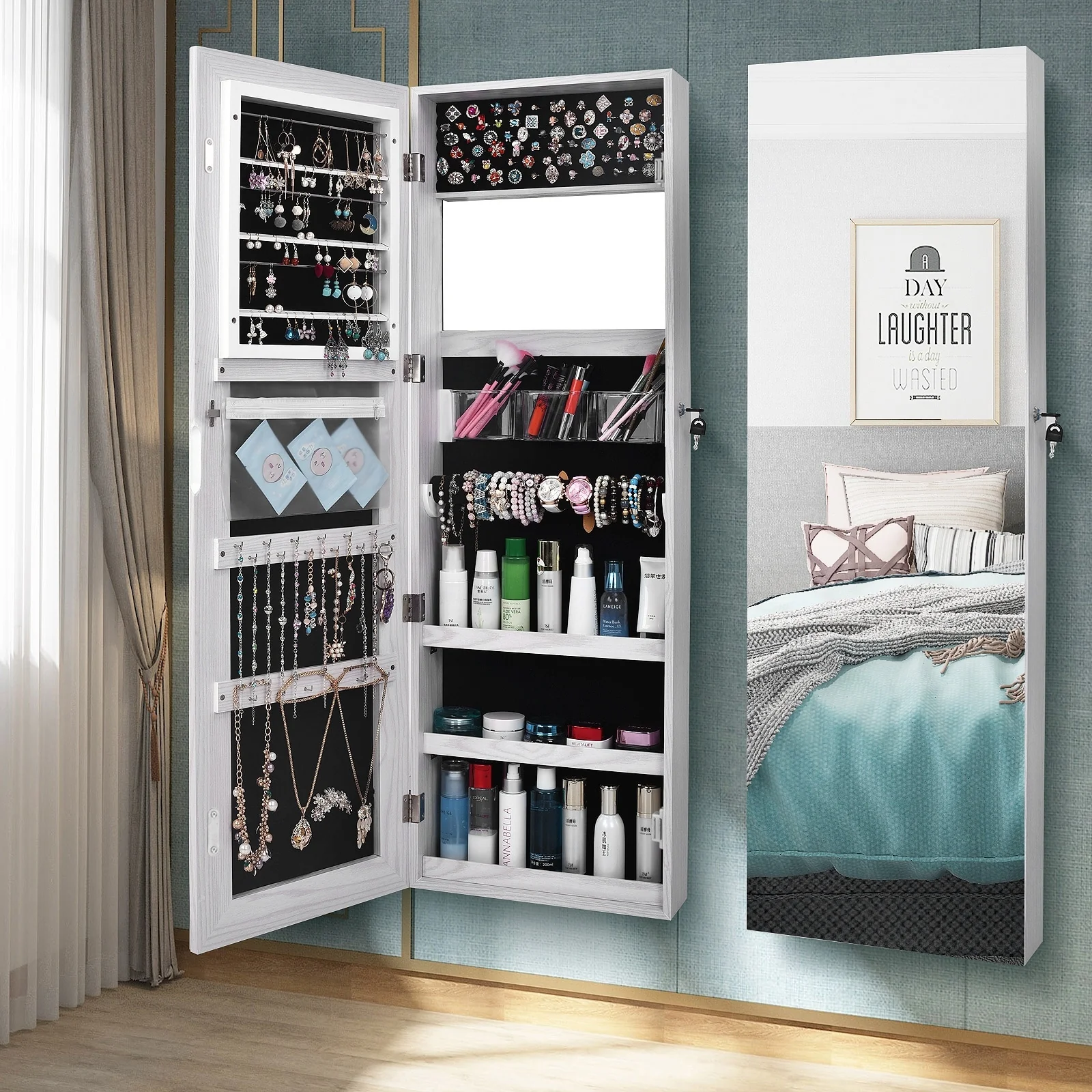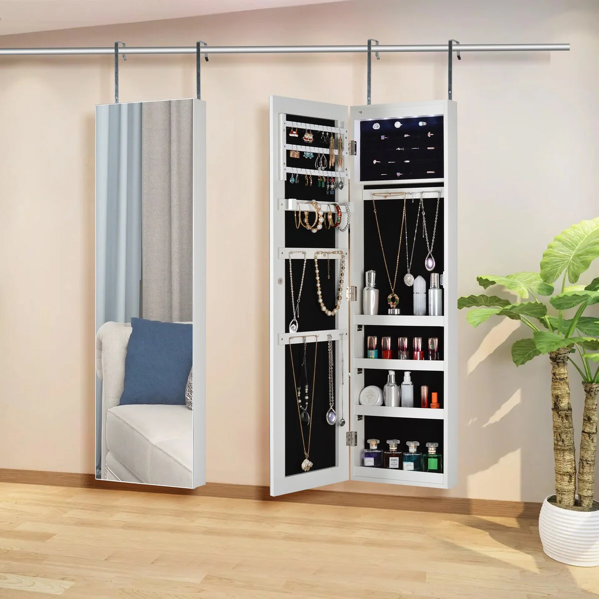 ashion Simple Jewelry Storage Mirror Cabinet With LED Lights