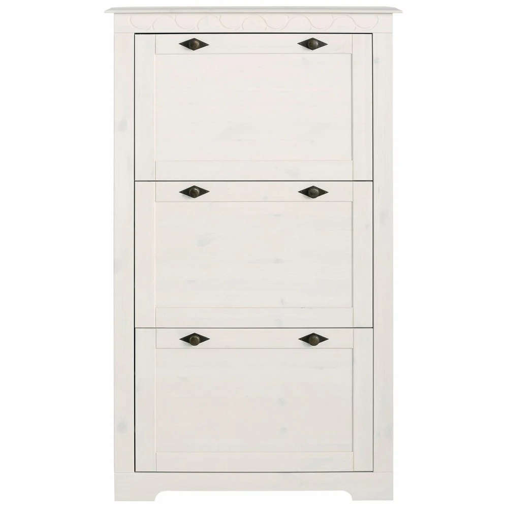 Lando Shoe Chest, 3 Flaps, solid pine, off white