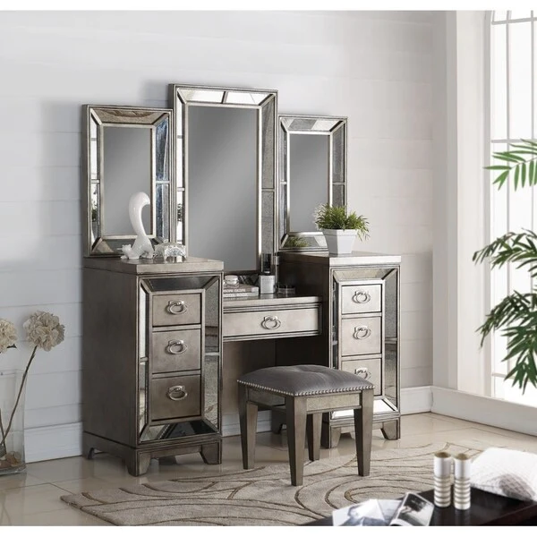 Highland Ave Grey Glam Complete Vanity with Mirrored Accents - N/A
