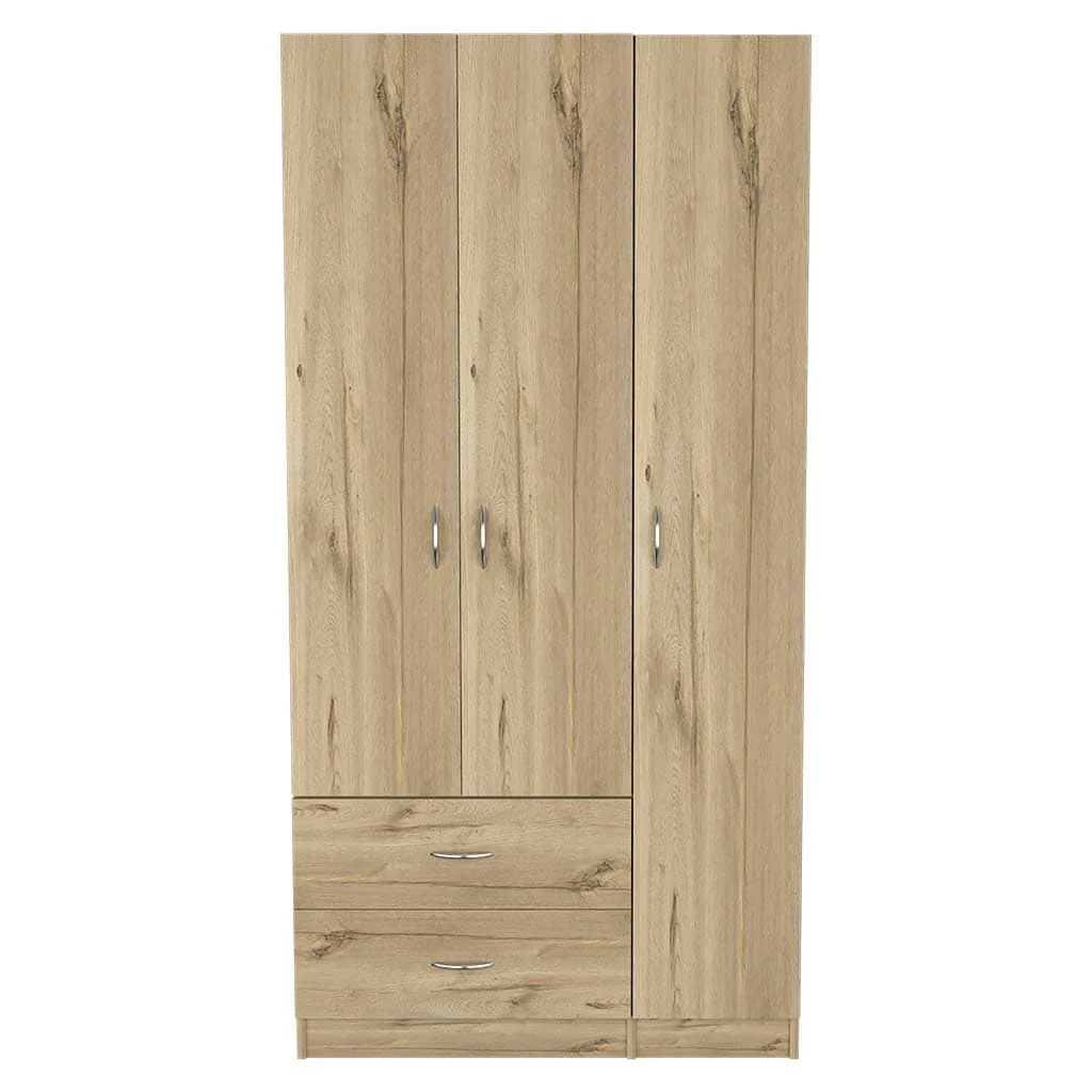 3-Door Wardrobe with 2 Drawers For Bedroom