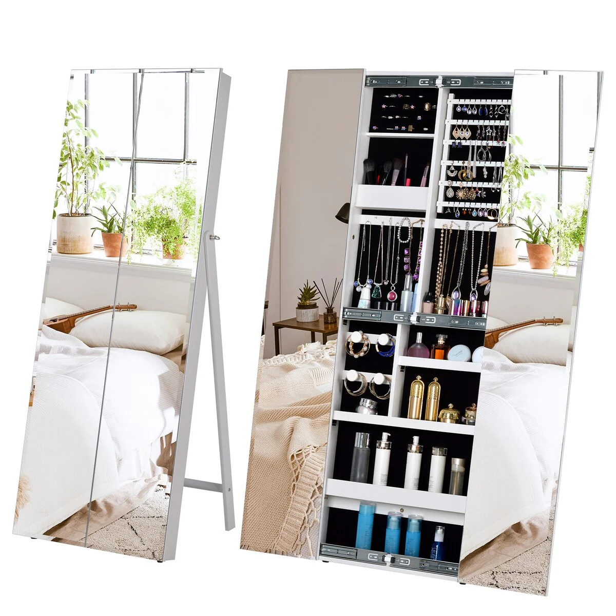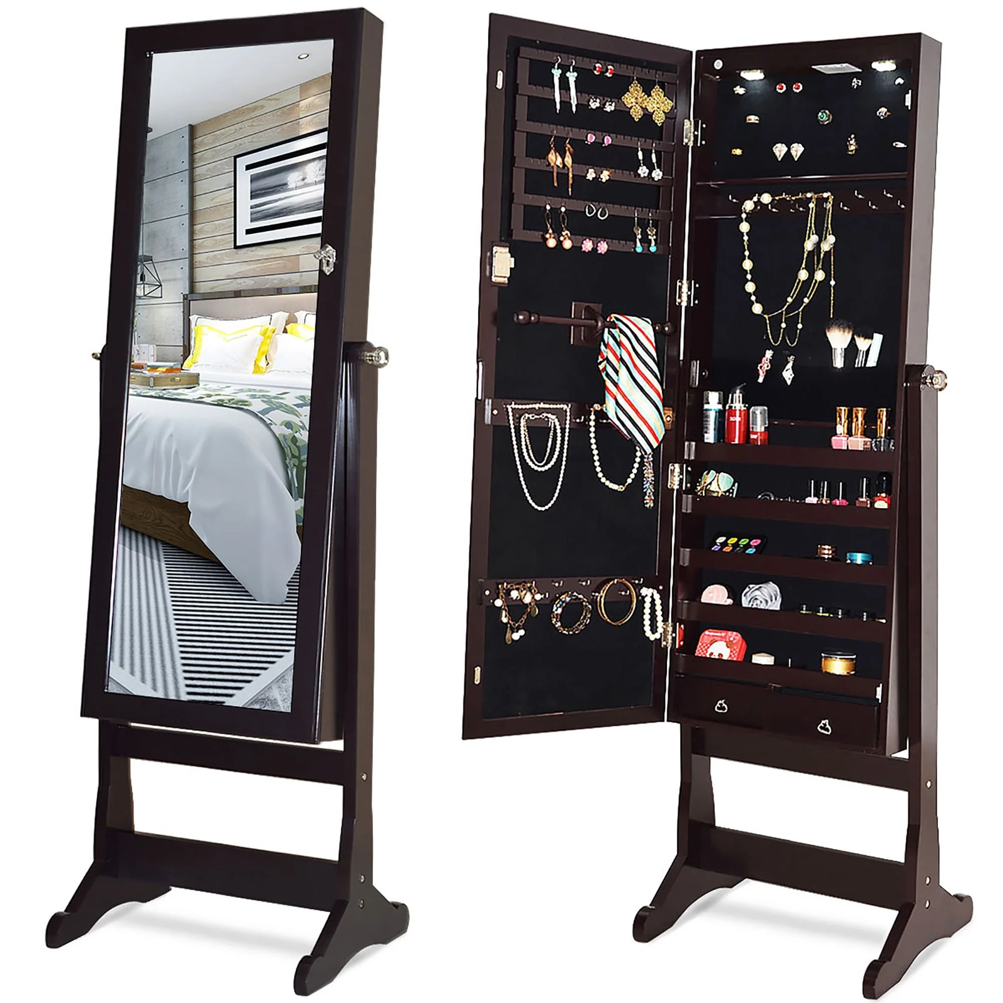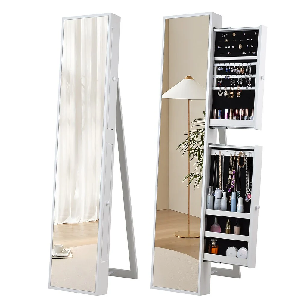 Costway Jewelry Cabinet Armoire Full Length Mirror Lockable with