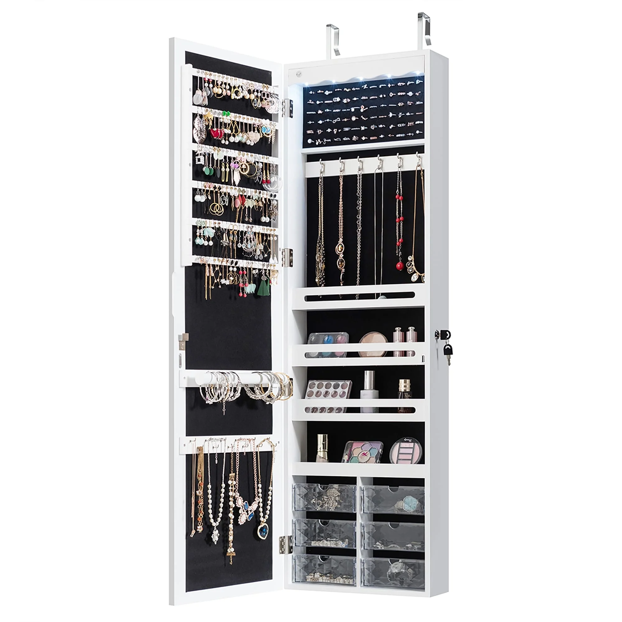 LED Mirror Jewelry Armoire Wall Door Mounted
