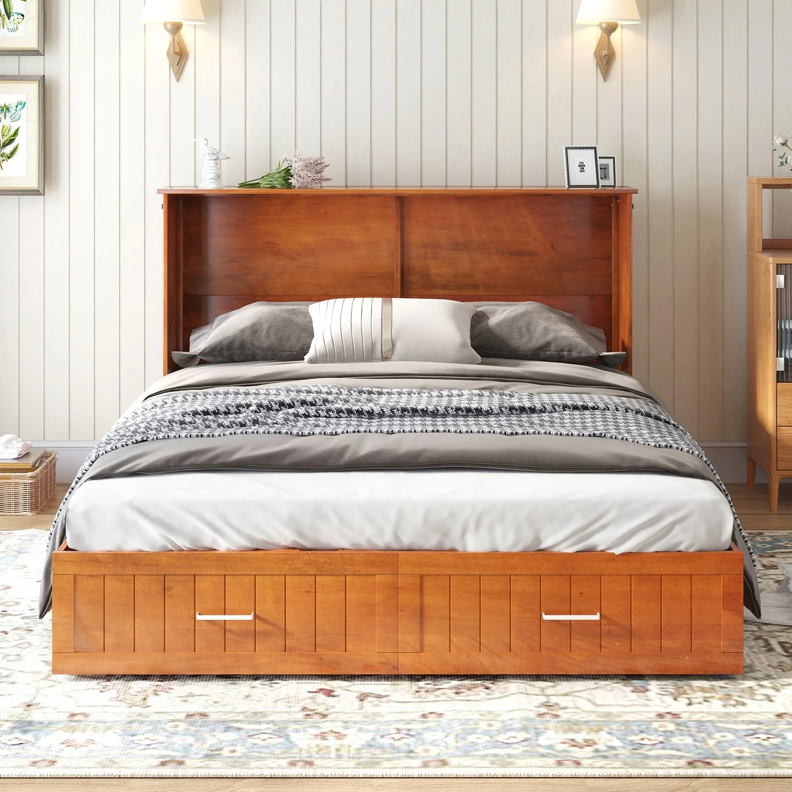 Mixoy Cabinet Murphy Bed Chest with Charging Station,Mattress,Drawer