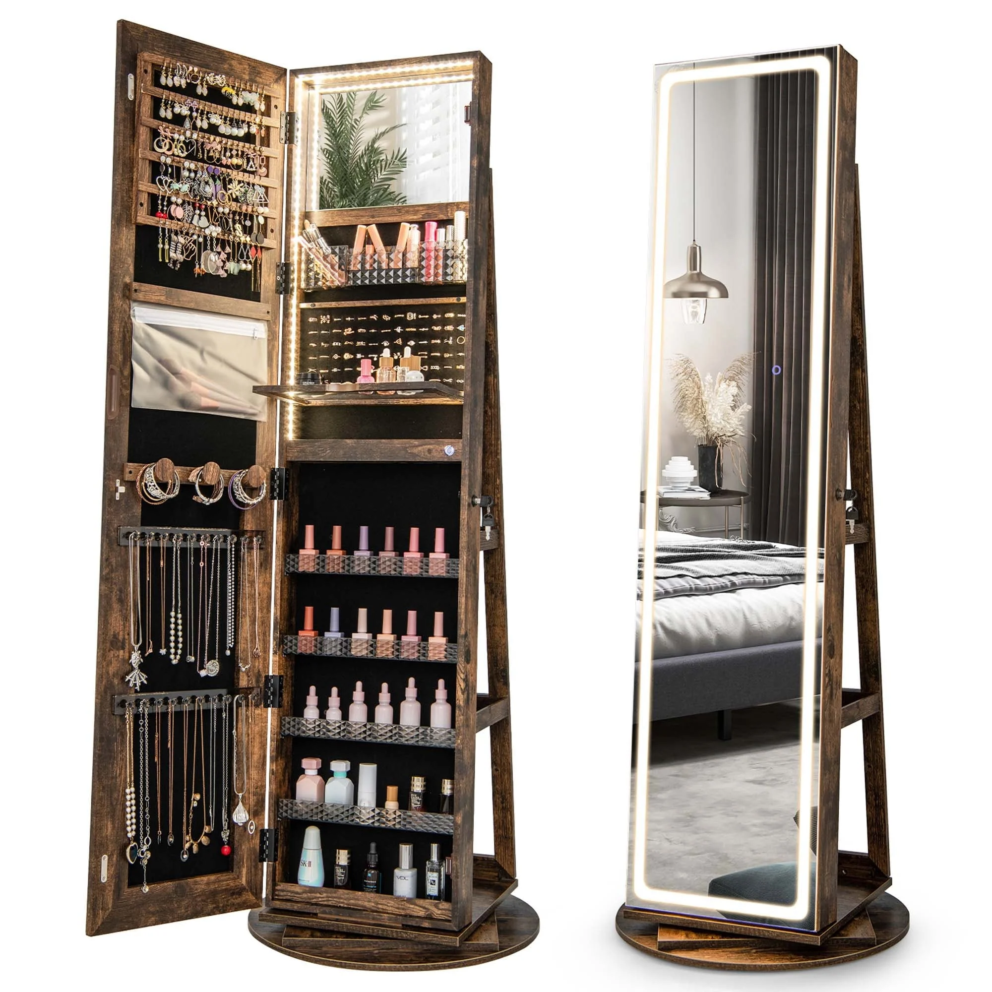 Mirror Jewelry Cabinet Standing Armoire