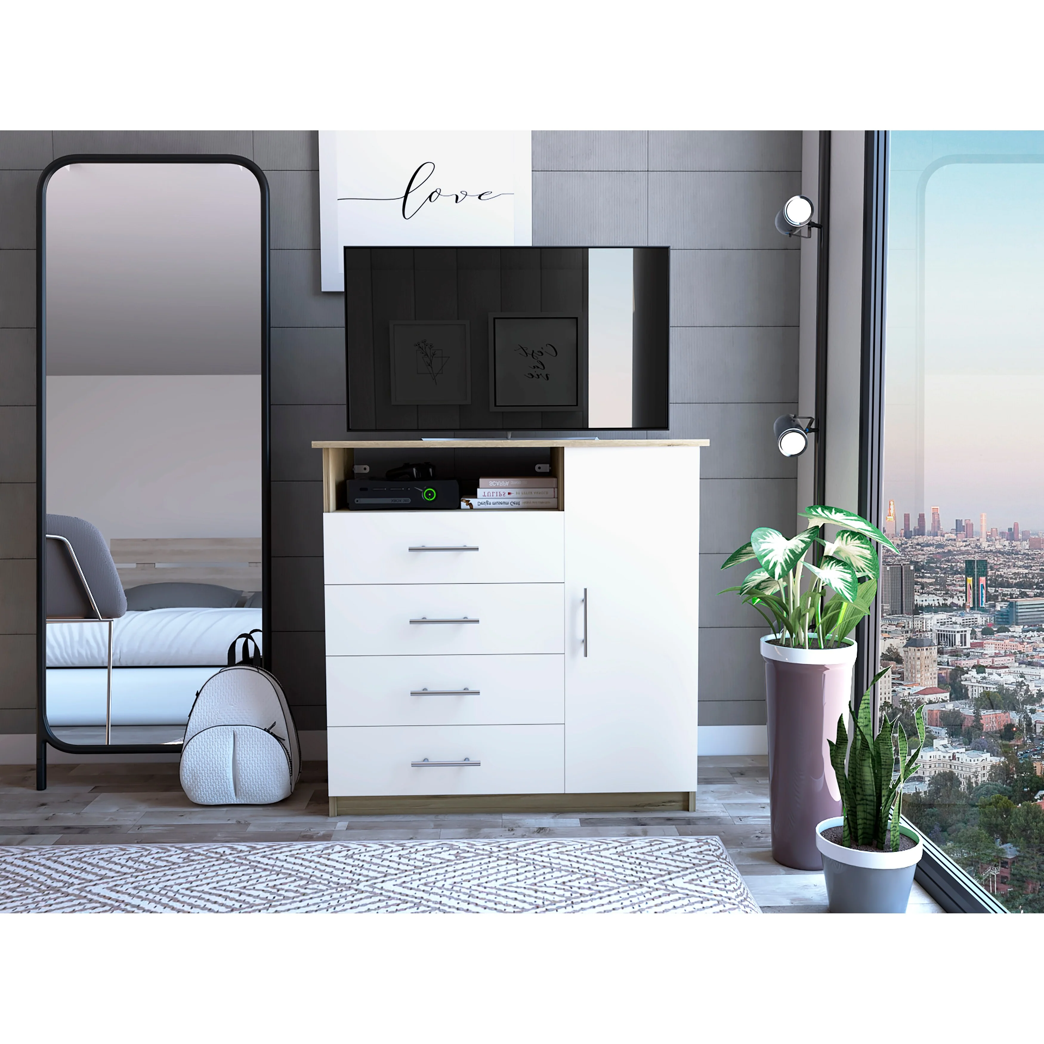 Baylon 4-Drawer 1-Shelf Dresser White