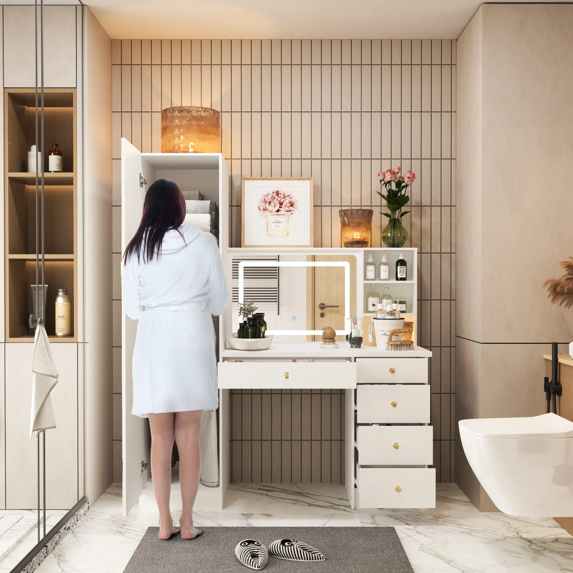 Fashion Simple Jewelry Storage Mirror Cabinet With LED Lights
