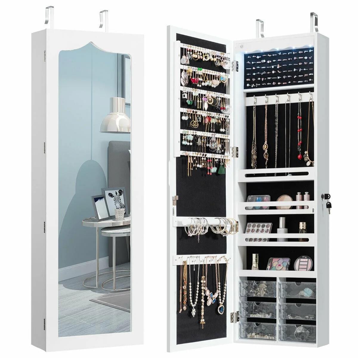 Full Mirror Jewelry Storage Mirror Cabinet With LED Lights