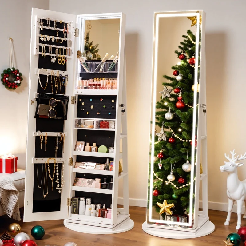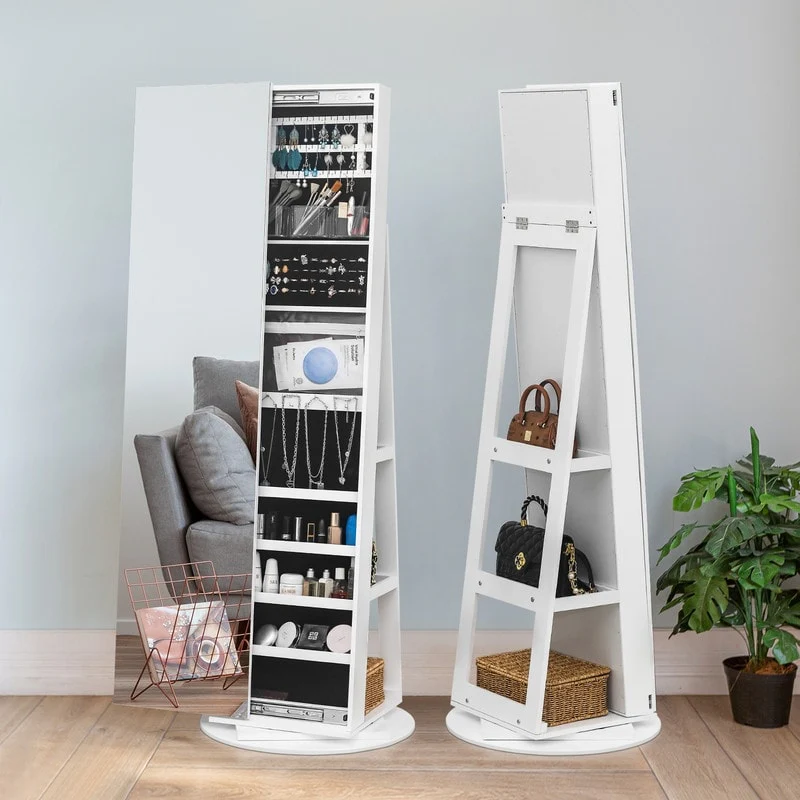 Full Length Mirror 360° Swivel Jewelry Cabinet