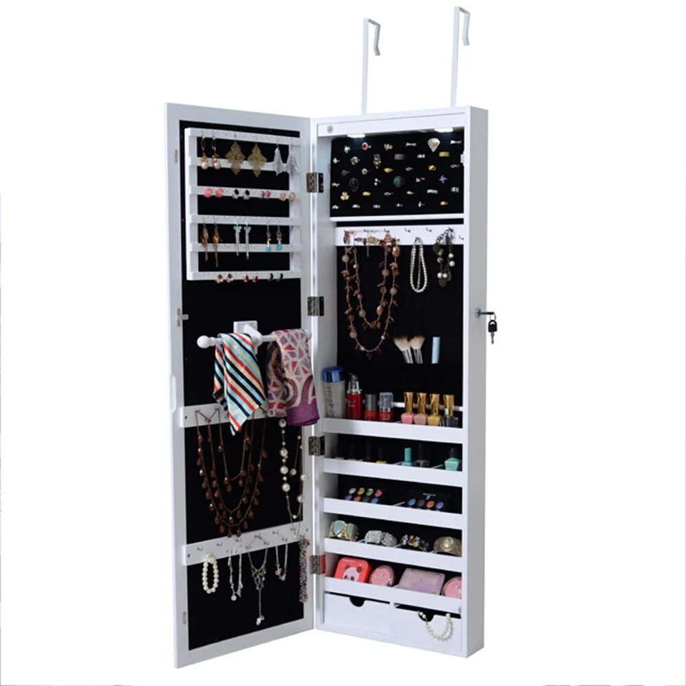 Lockable Sliding Mirror Door Jewelry Armoire - N/A