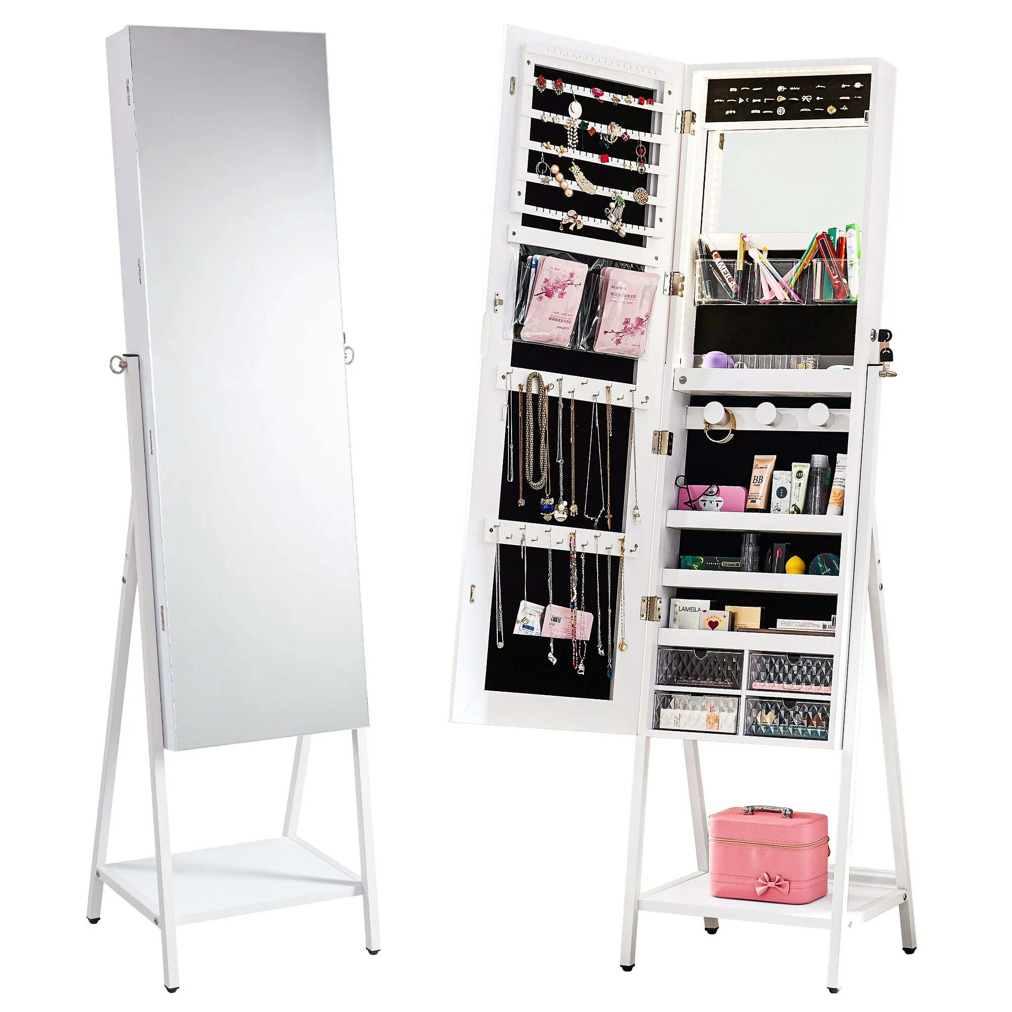 Fashion Simple Jewelry Storage Mirror Cabinet With LED Lights