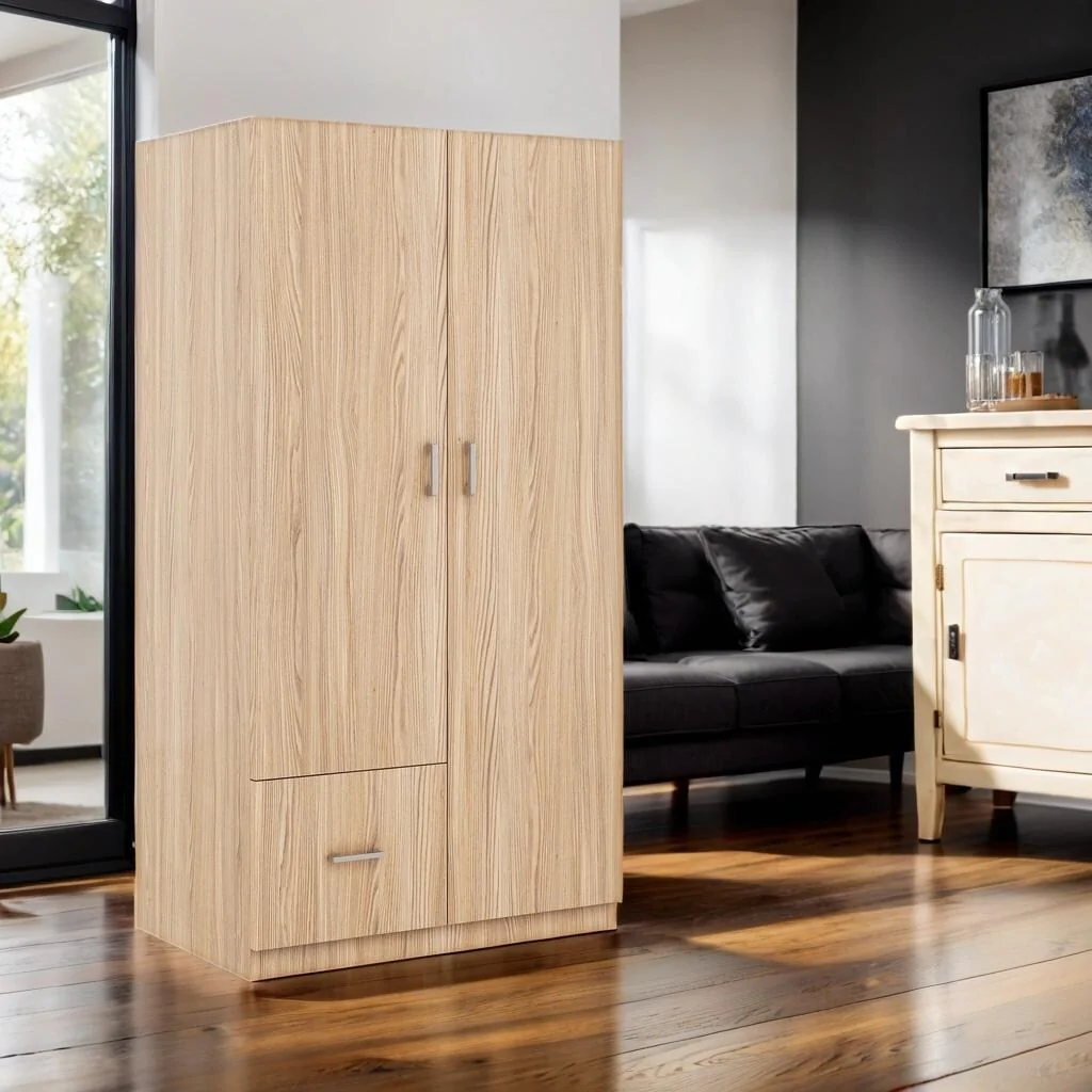 Natural Wooden Wardrobe Armoire with Double Doors