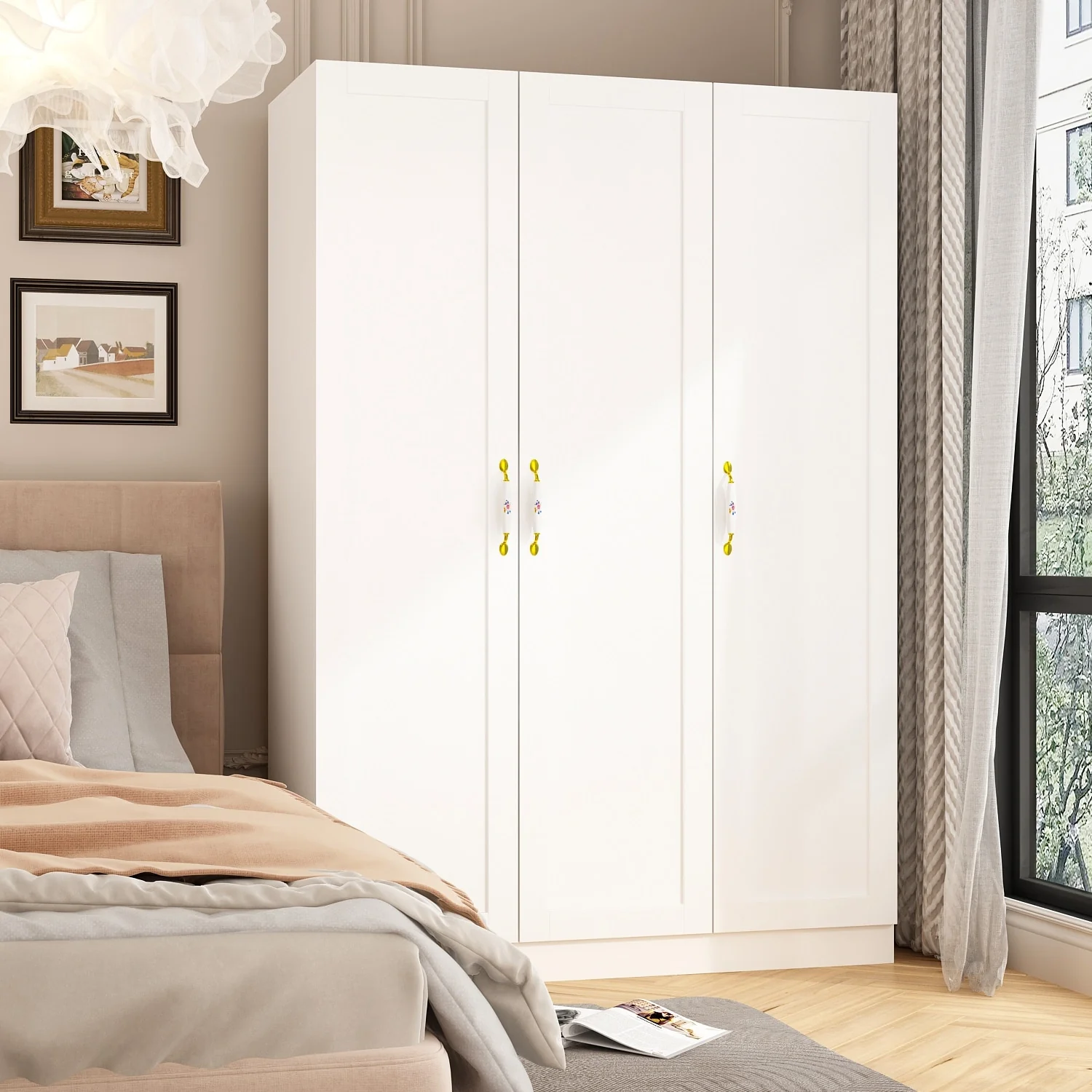 White Armoire with Hanging Rod and 3 Fixed Shelves