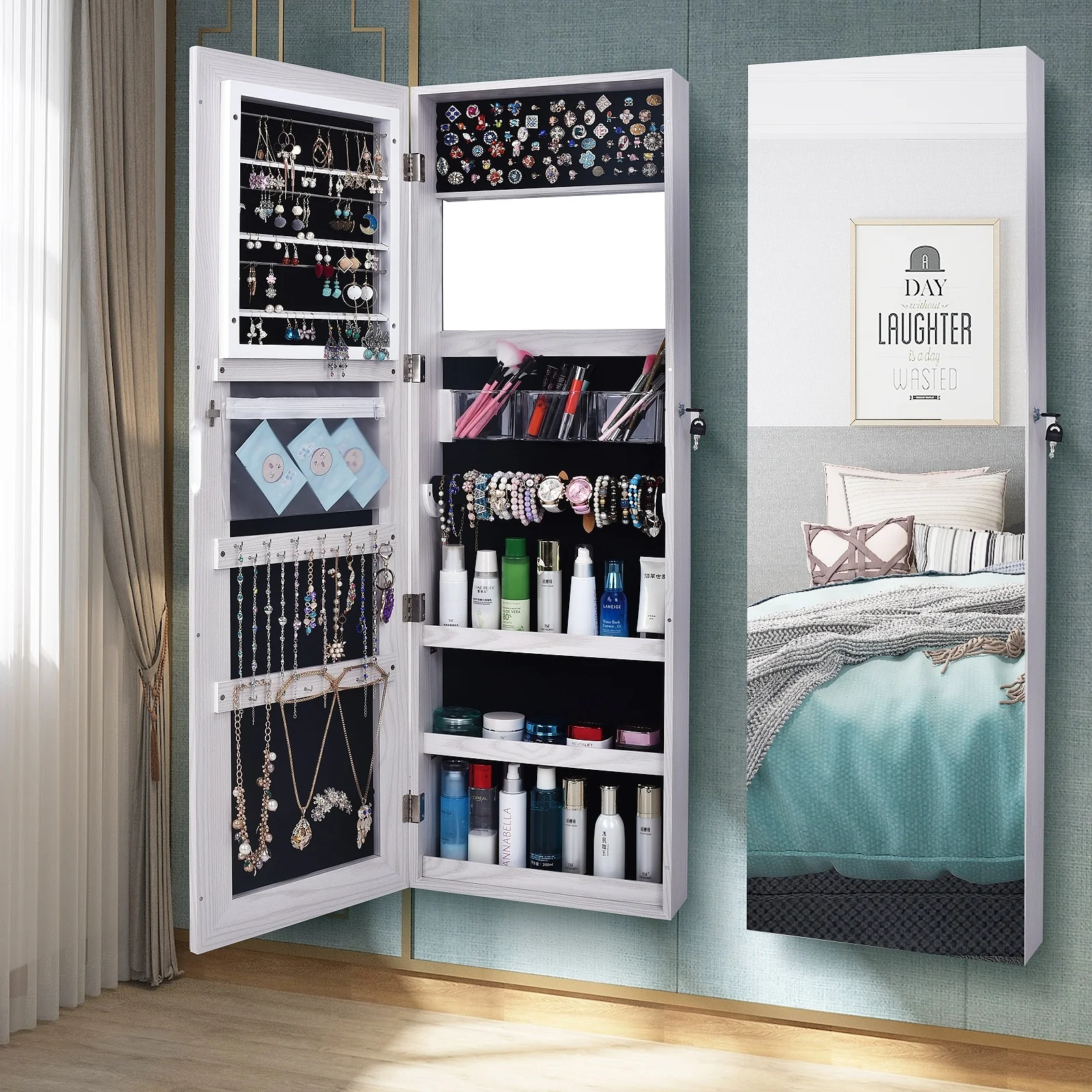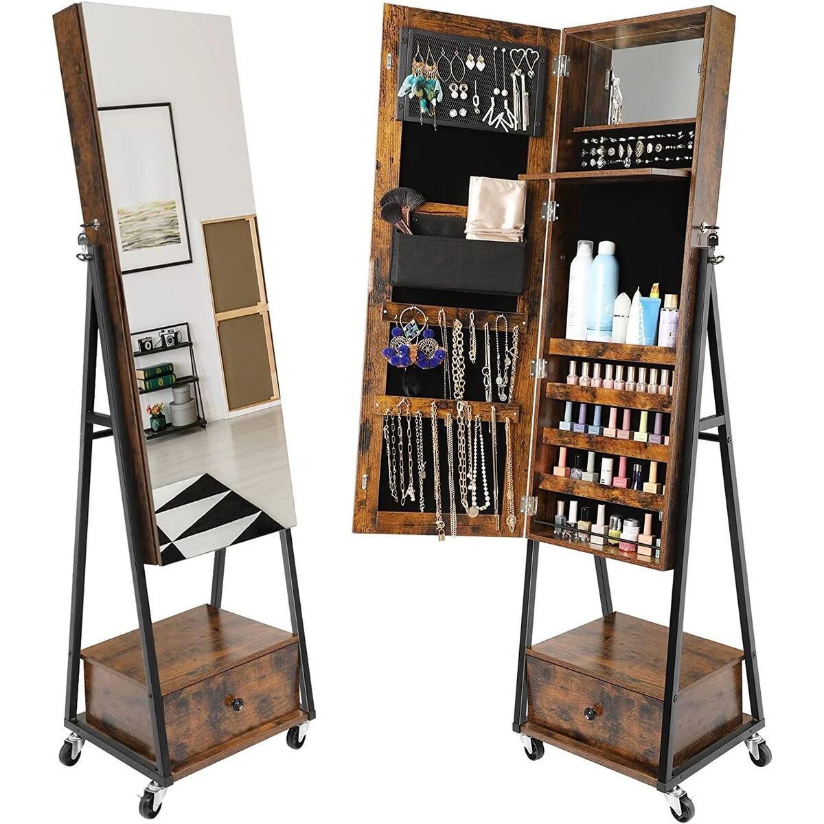 Mirror Jewelry Armoire Cabinet with Drawer