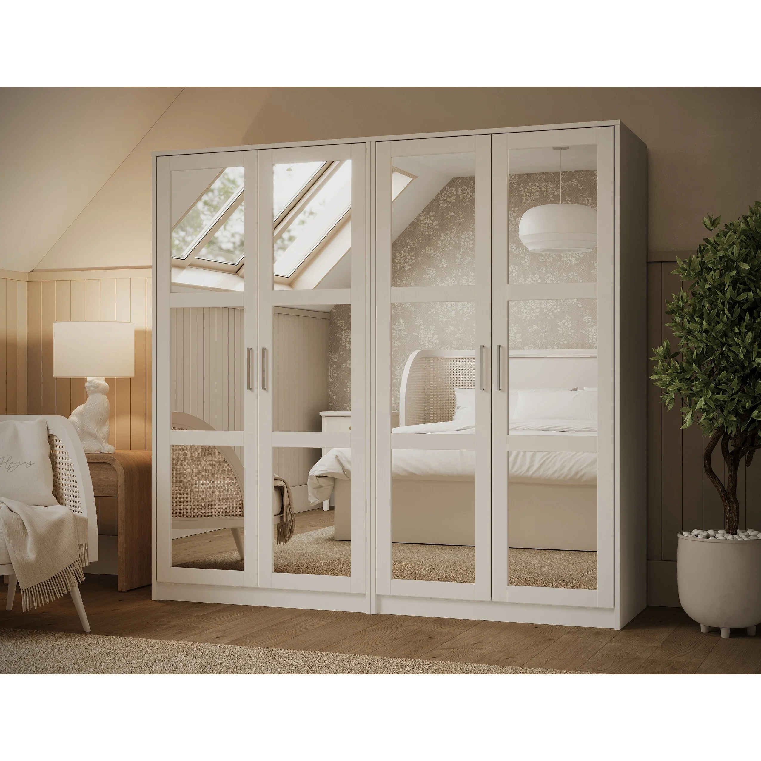 3-Door Mirror Wardrobe with 2 Drawers and Top Cabinet