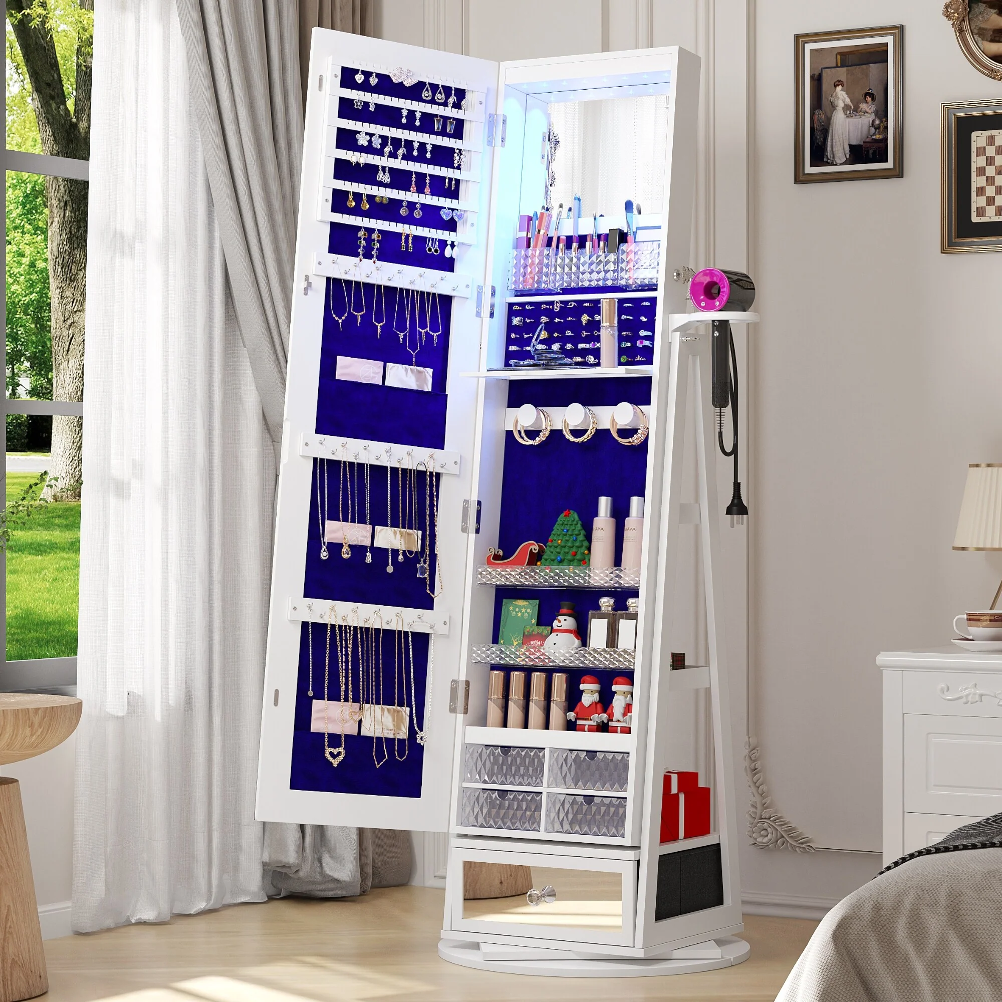 Full Length Mirror 360° Swivel Jewelry Cabinet