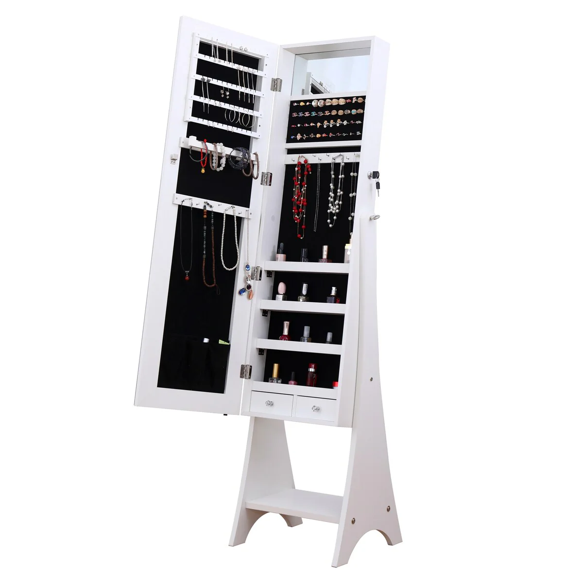 Full Mirror Jewelry Storage Cabinet with Slide Rail