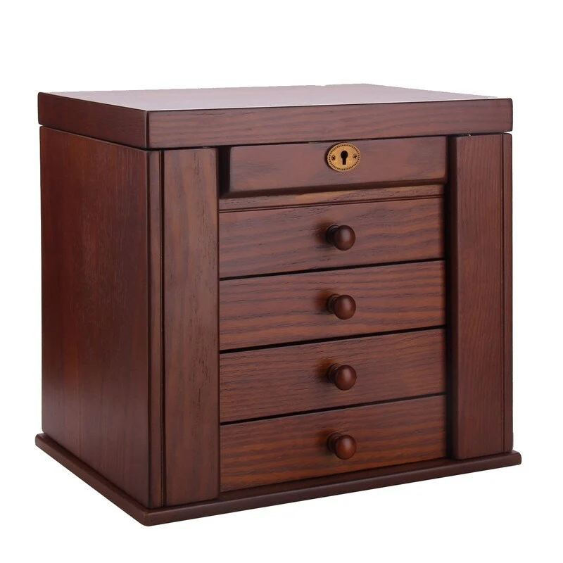 Curata Matte Oak Finish Veneer Locking Wooden Jewelry Box