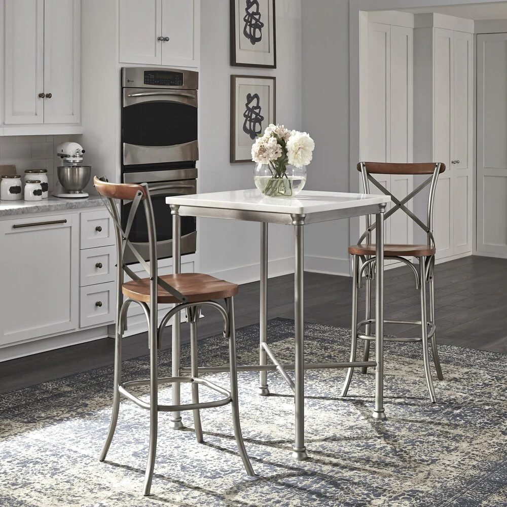 Orleans Marble Finished Quartz Top Bar Table and Two Stools