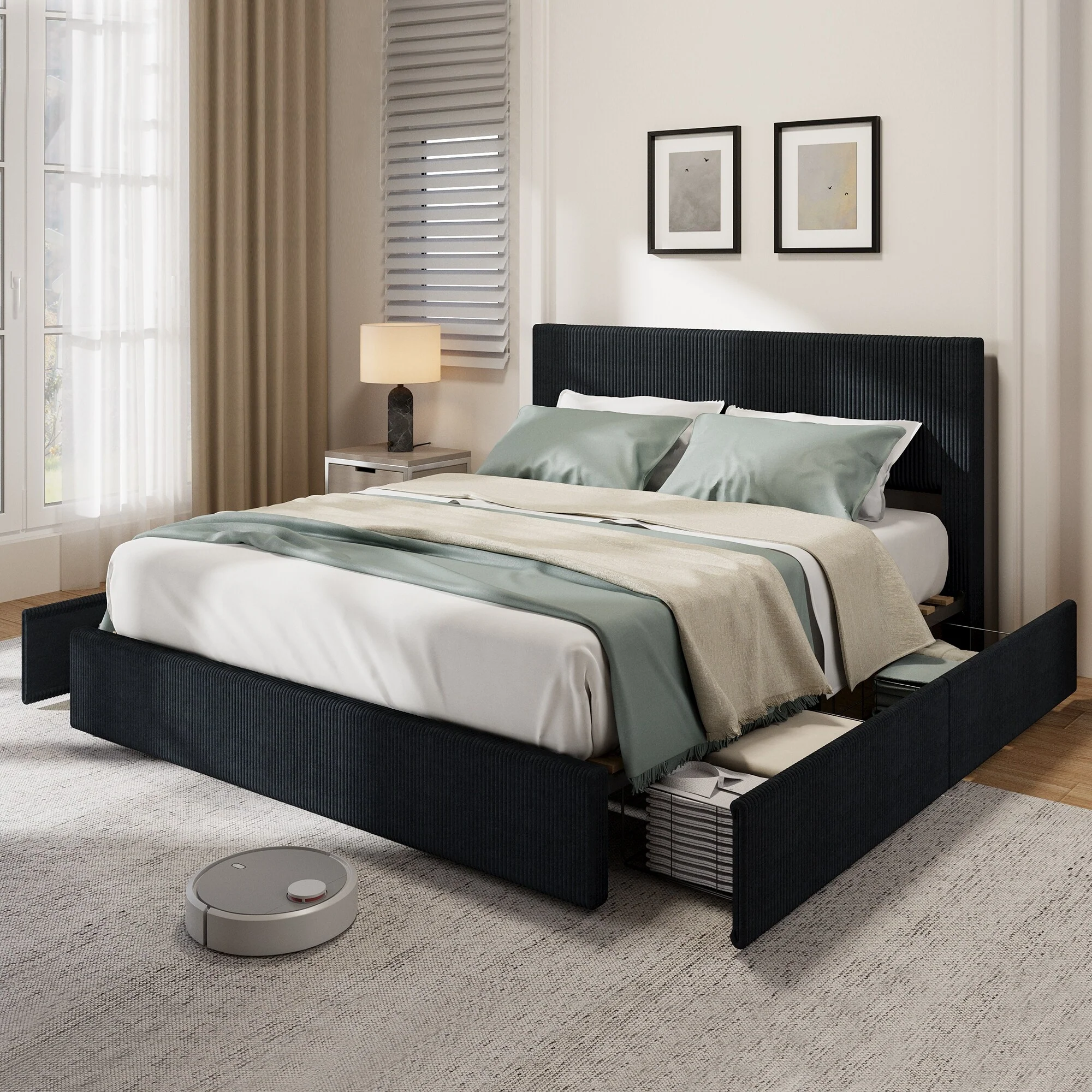 King Platform Bed Frame with Adjustable Upholstered Headboard