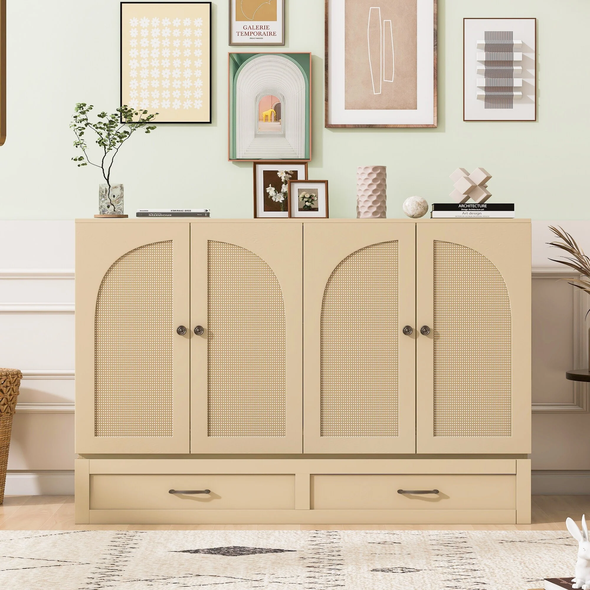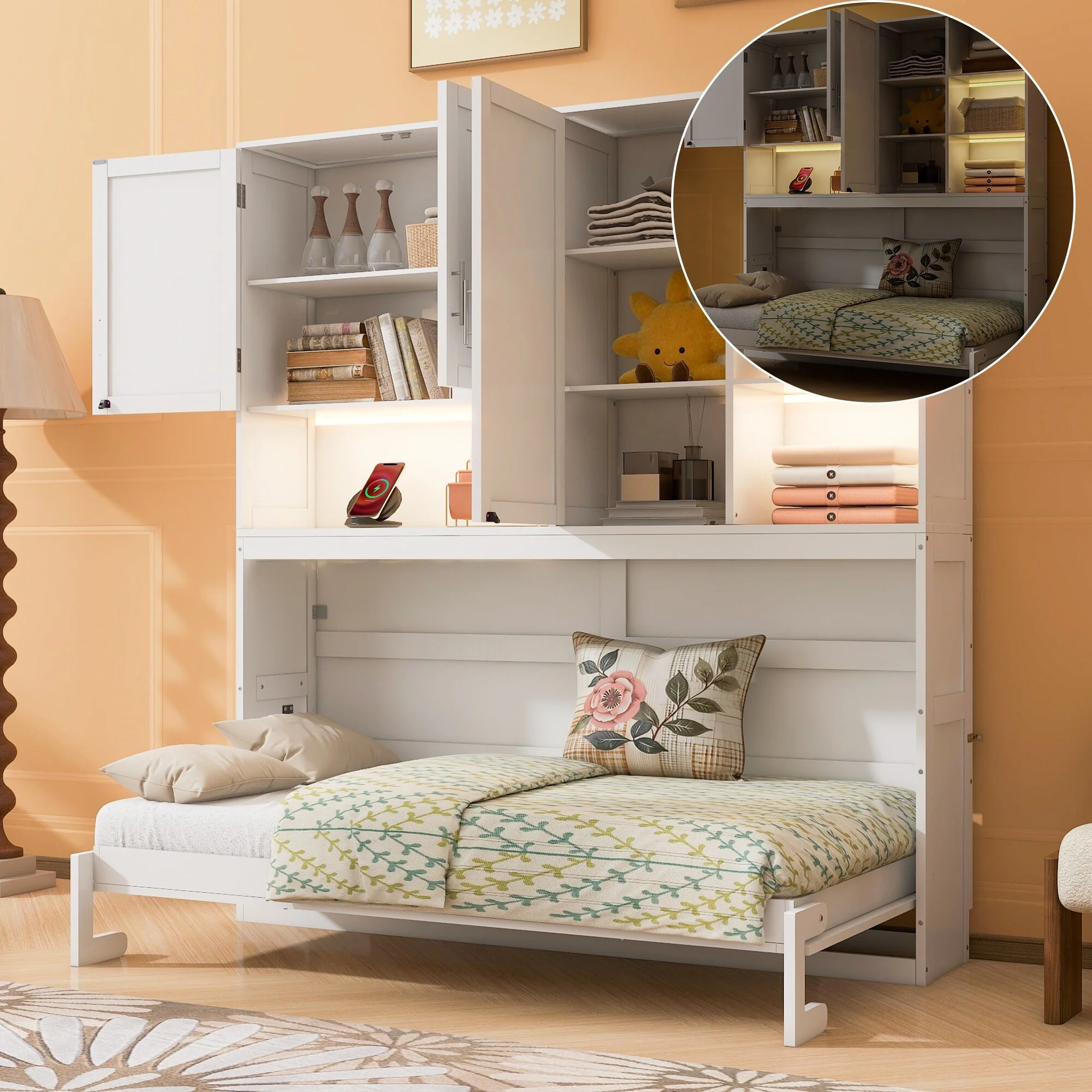 Full Size Murphy Bed with Large Drawers, Gold