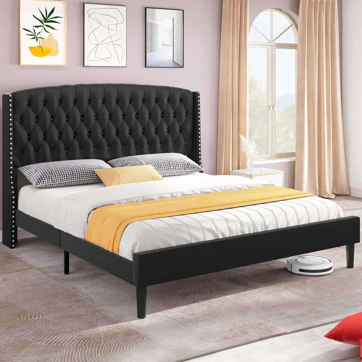 Moasis King Velvet Tufted Upholstered Platform Bed Frame