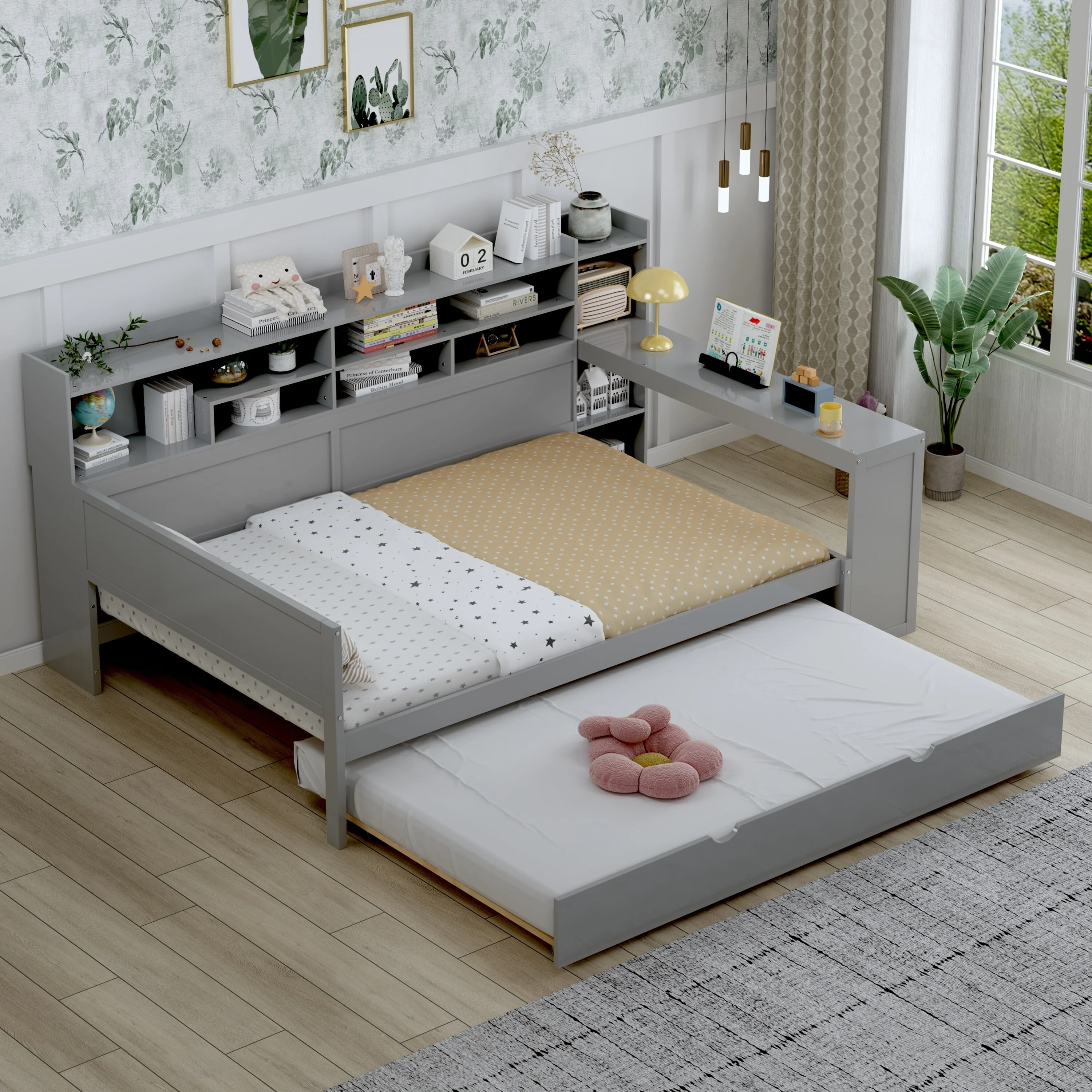 Twin Over Full Metal Bunk Bed with 5-Tier Shelves, 92.7L x 56W x 67H