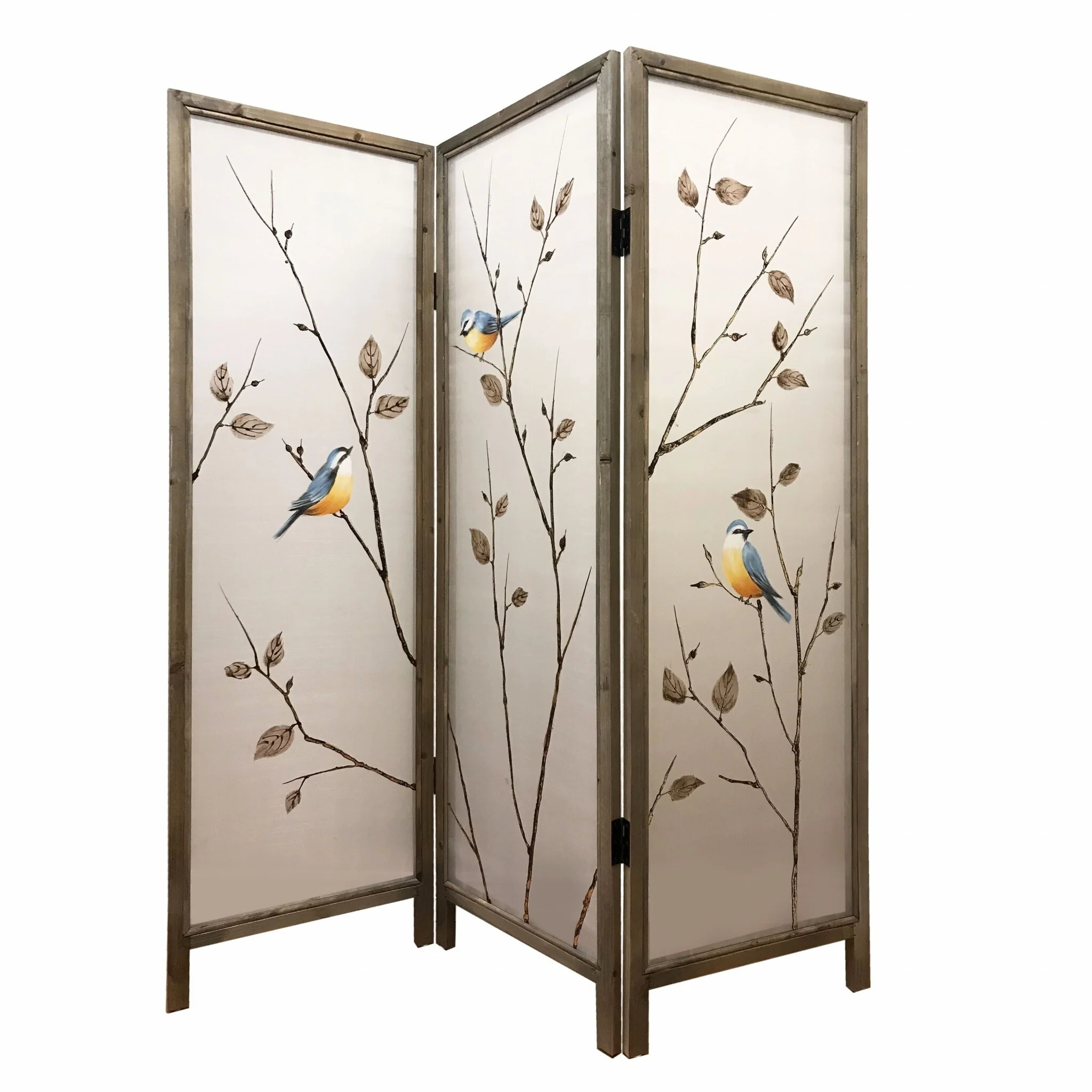 60 x 1 x 63 Brown Fabric And Wood 3 Panel Screen