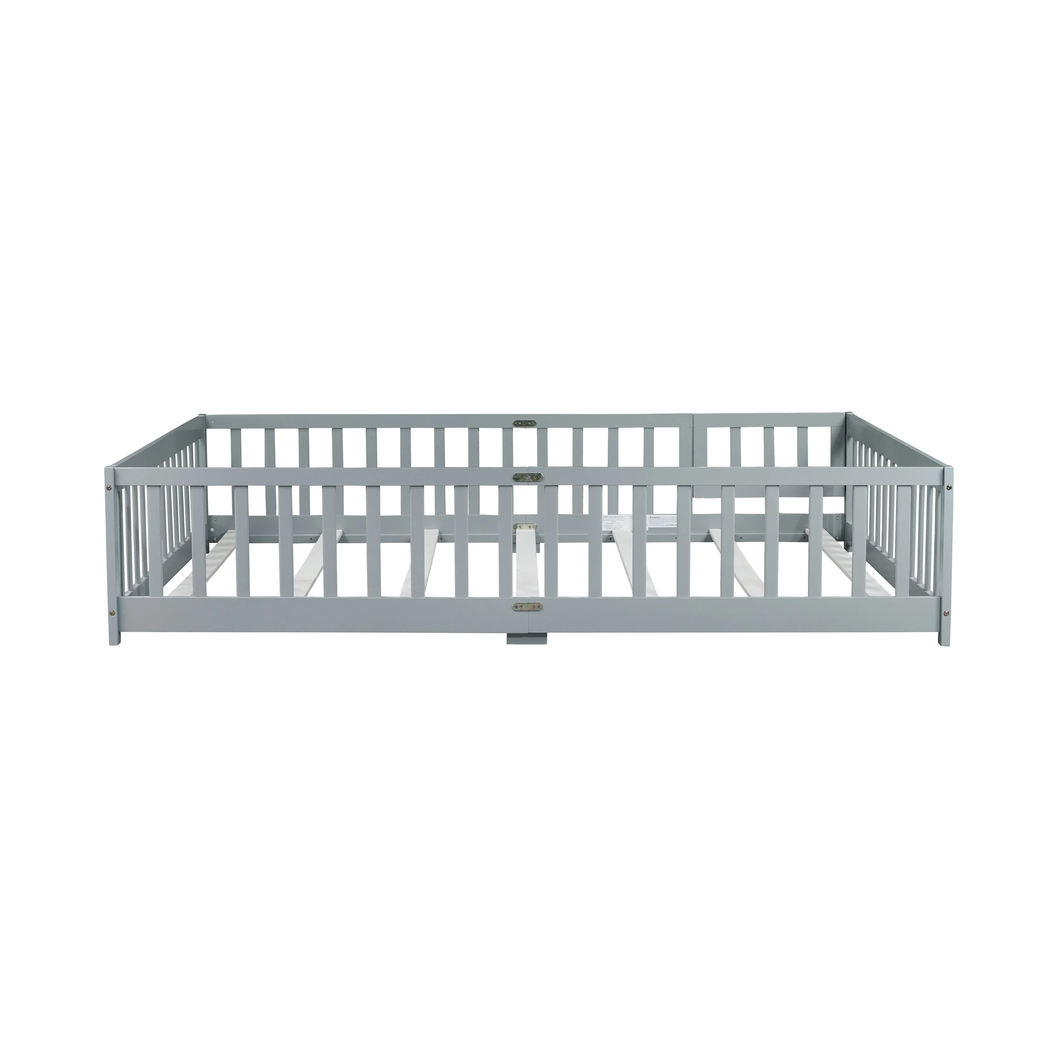 Rubber Wood Floor Bed with Safety Guardrails