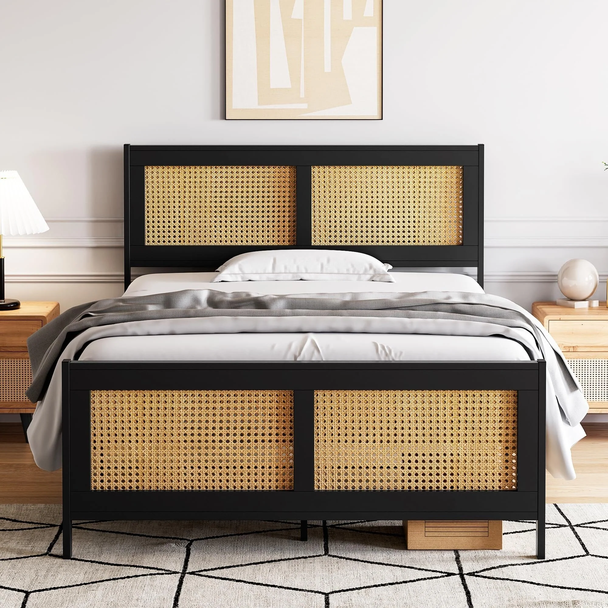 Bed Frame with Rattan Headboard and Footboard