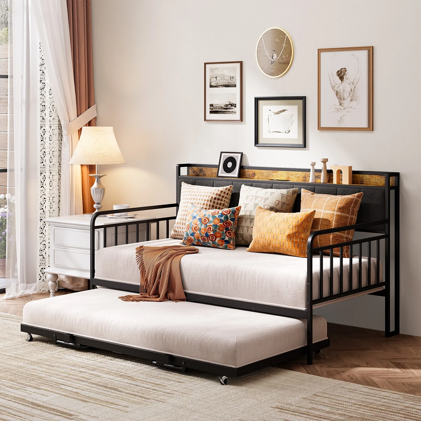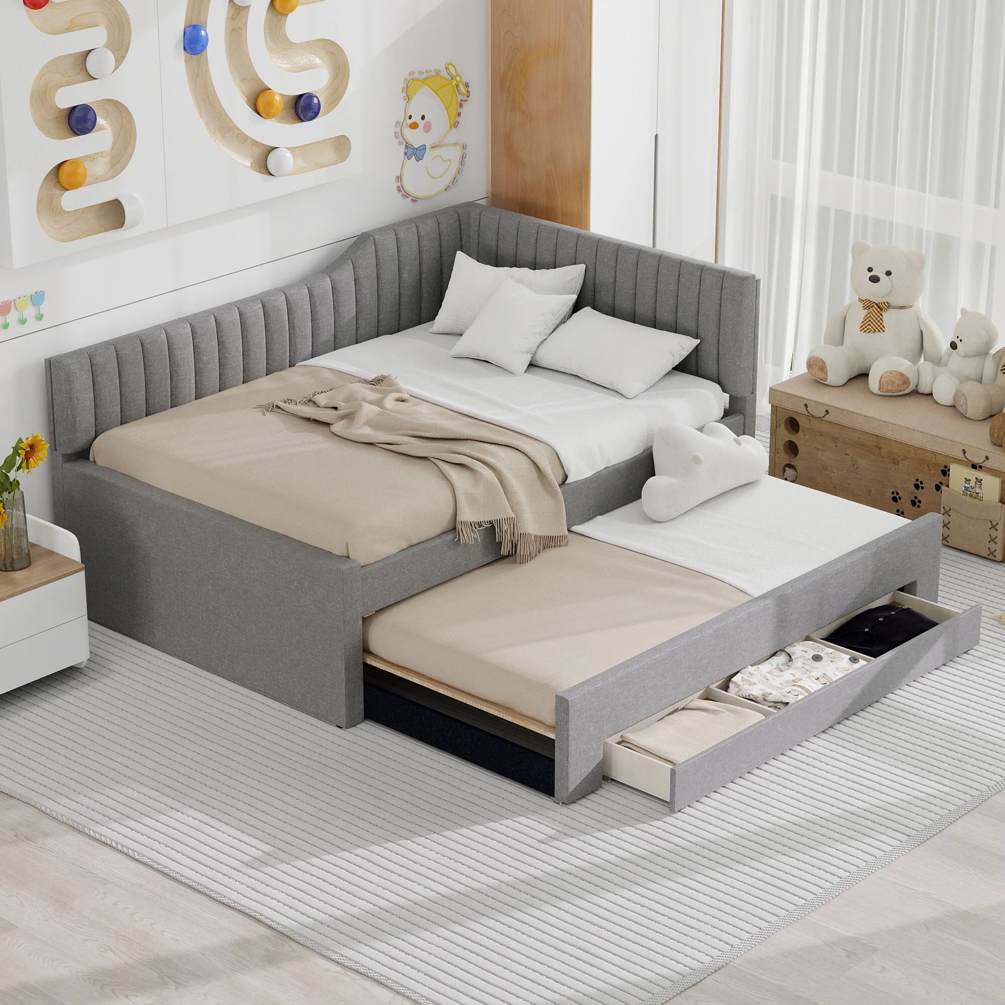 Full Size Upholstered Daybed with Trundle and Three Drawers