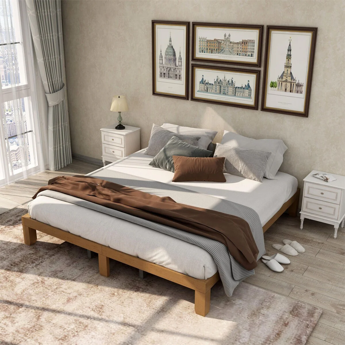 King Size Solid Wood Platform Bed Easy Assembly
