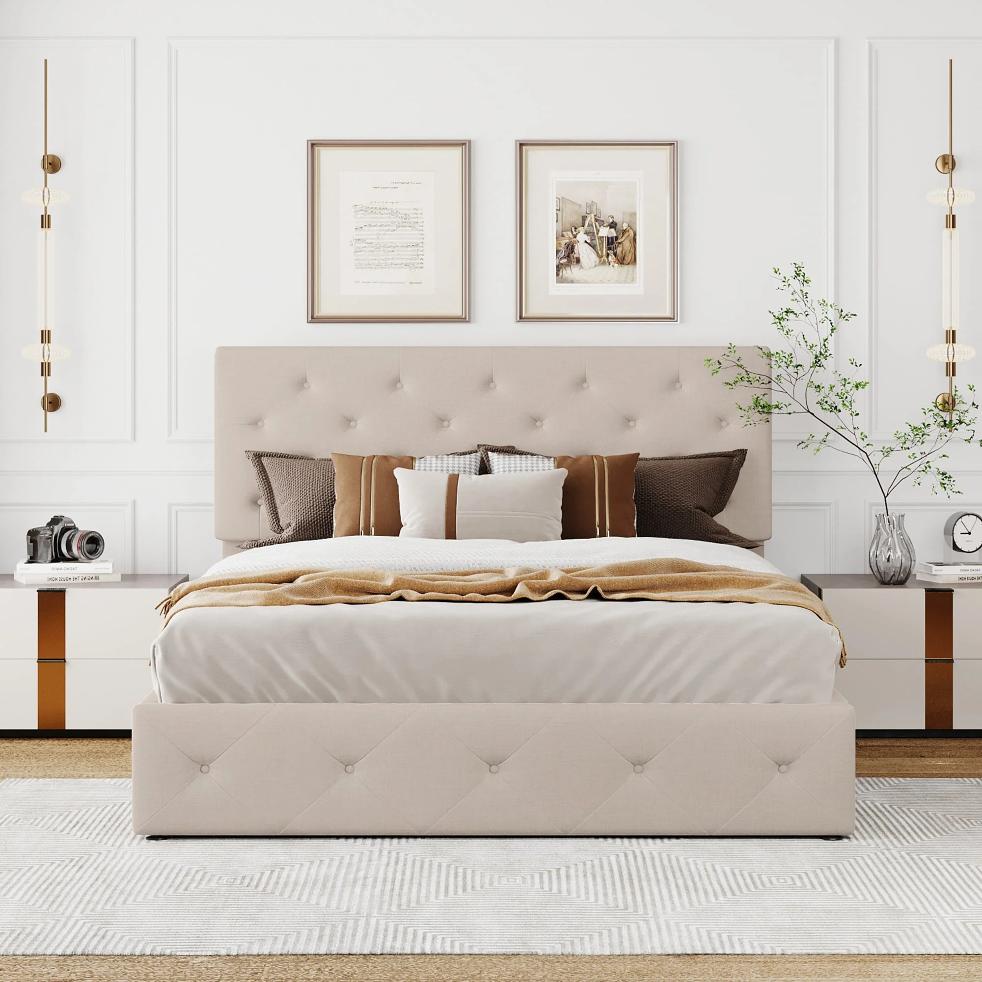 Upholstered Platform bed with a Hydraulic Storage System