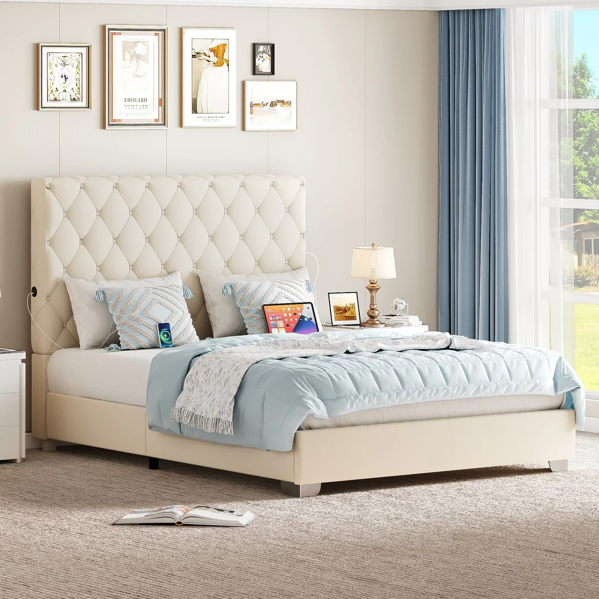 Moasis Queen Upholstered High Headboard Bed Frame
