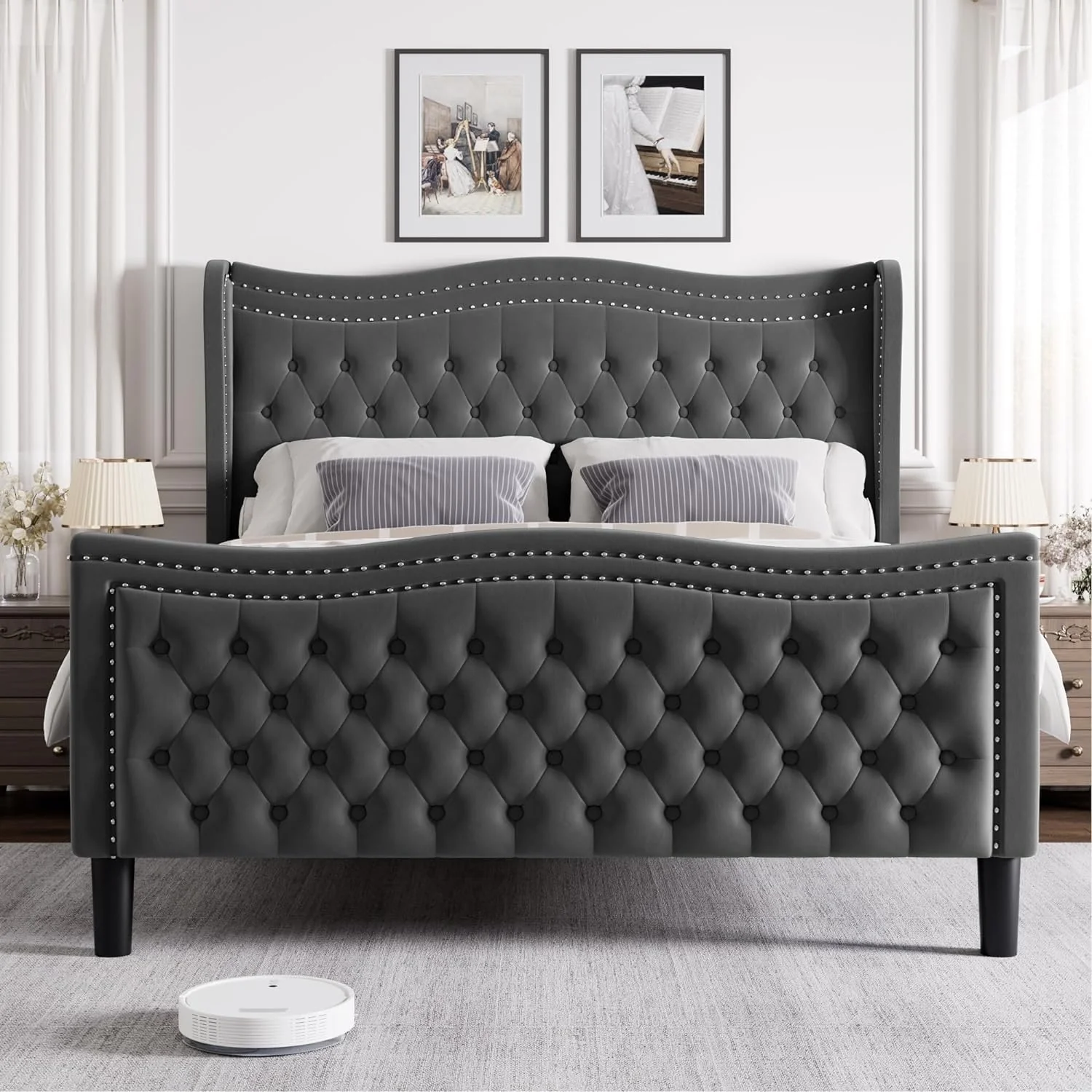 Lifezone Bed Frame with Headboard, Dark Grey