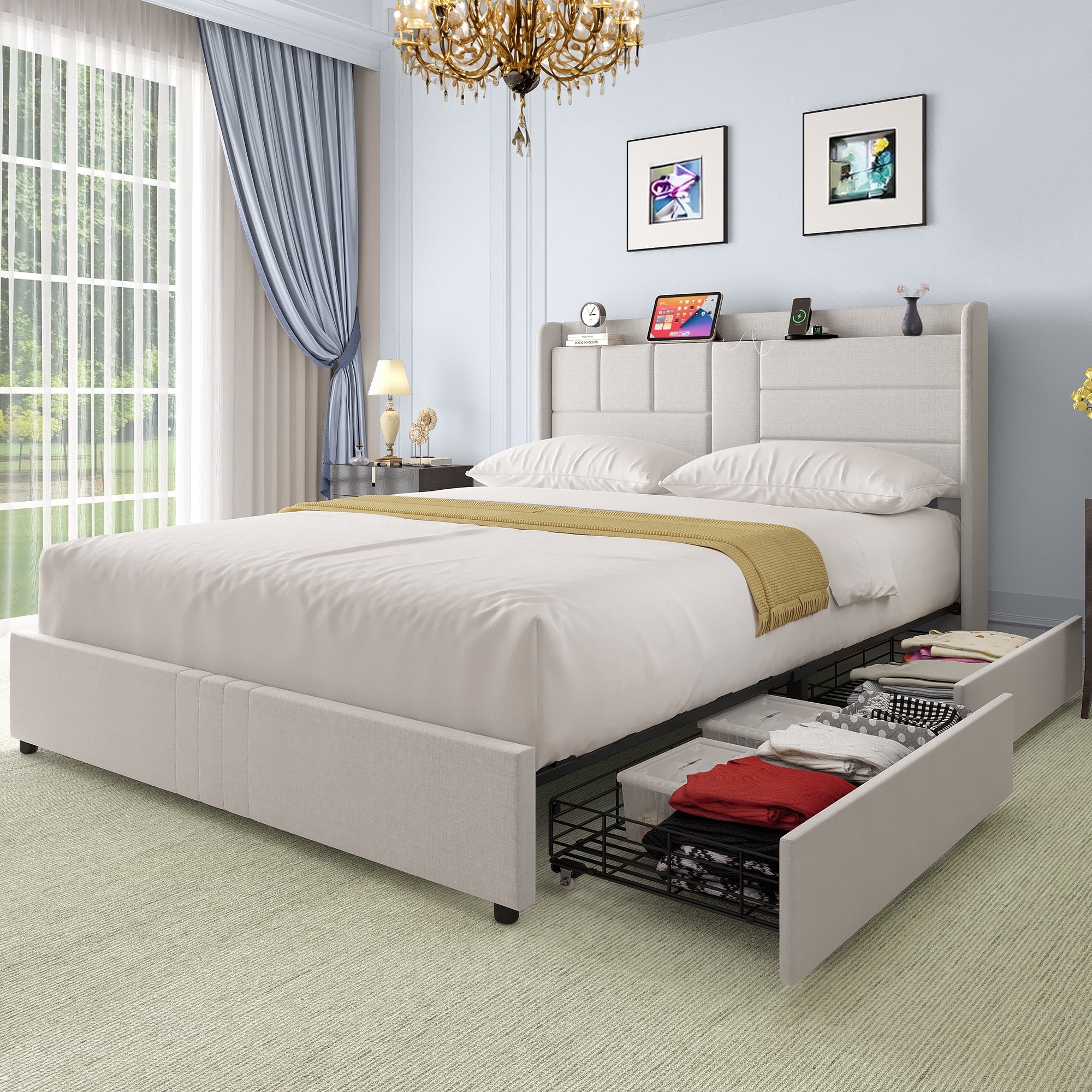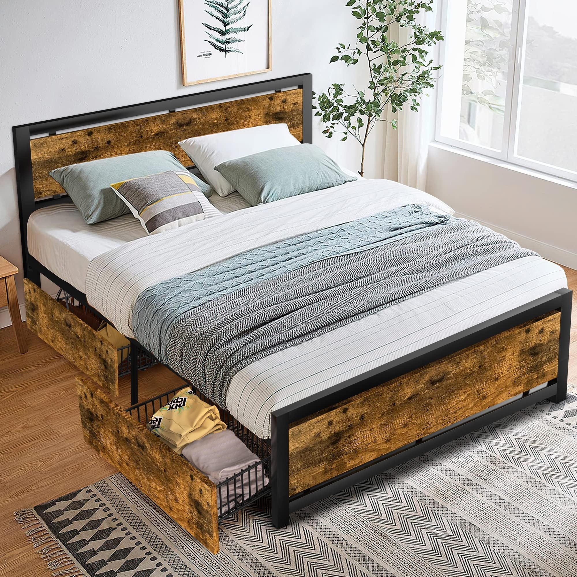 Bed Frame with 4 Drawers Storage, Platform Bed Frame