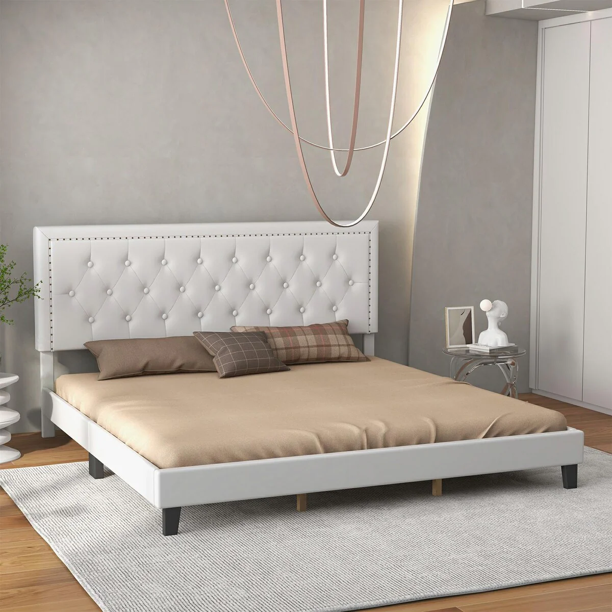 King Size Bed Frame with Leather Upholstered Headboard