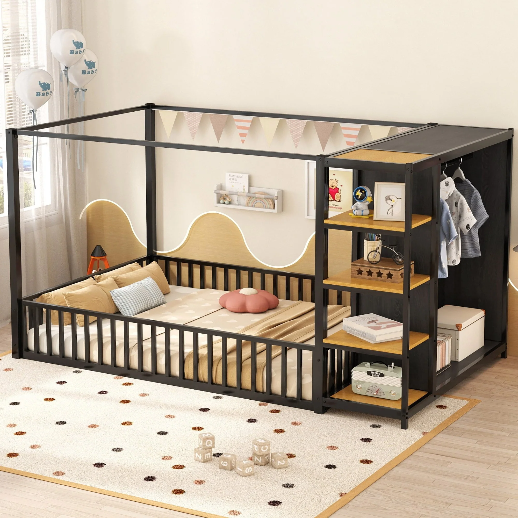 Full Size Platform Bed with 6 Storage Drawers for Bedroom