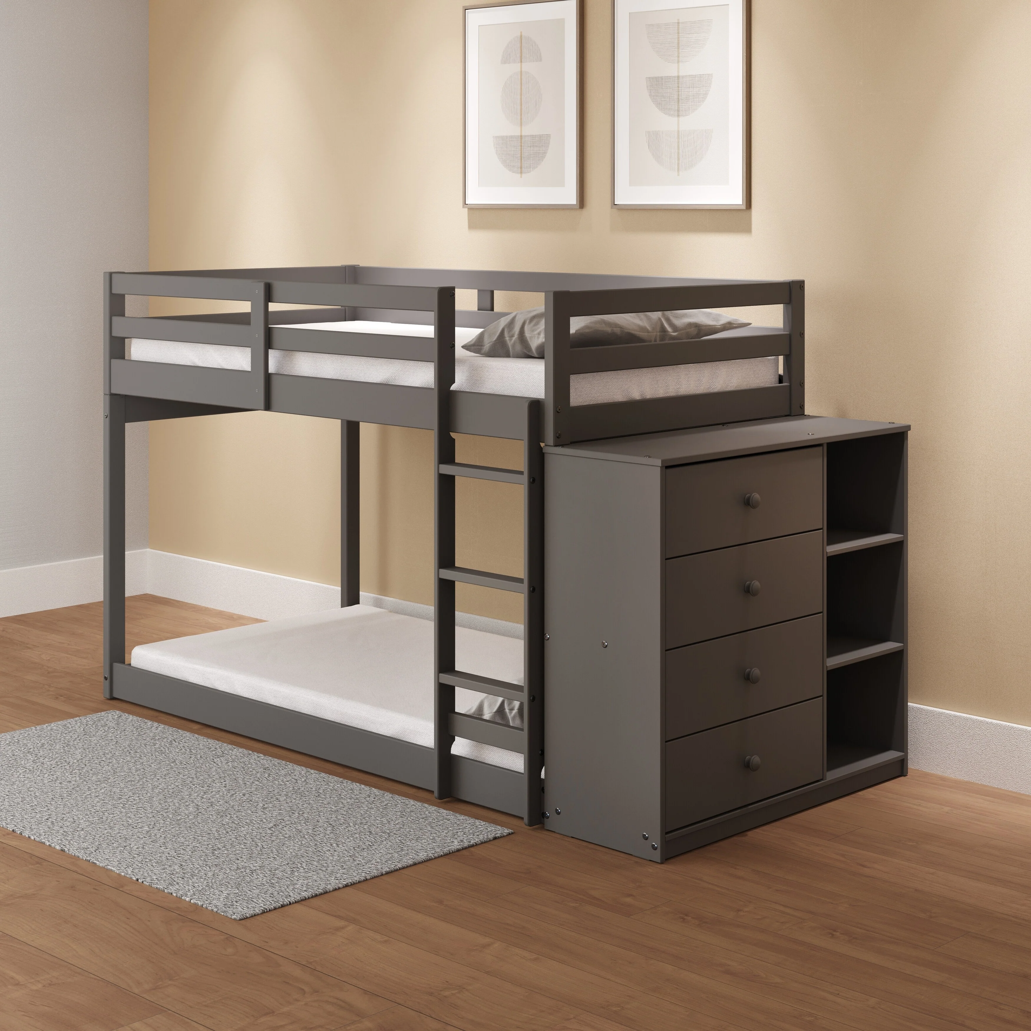 Gaston Gray Finish Twin/Twin Bunk Bed W/4 Drawers & 3 Compartments