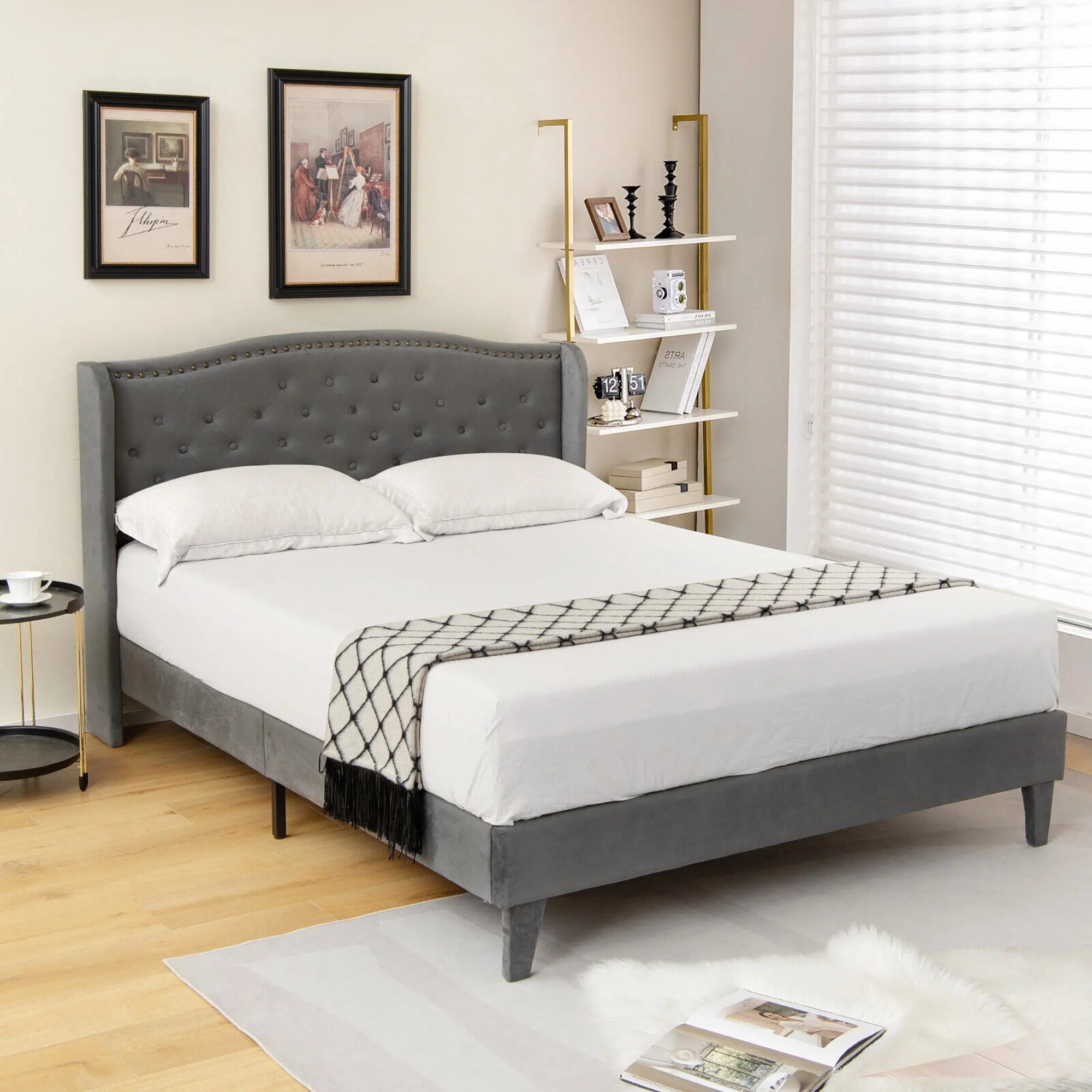 Queen Size Velvet Upholstered Platform Bed
