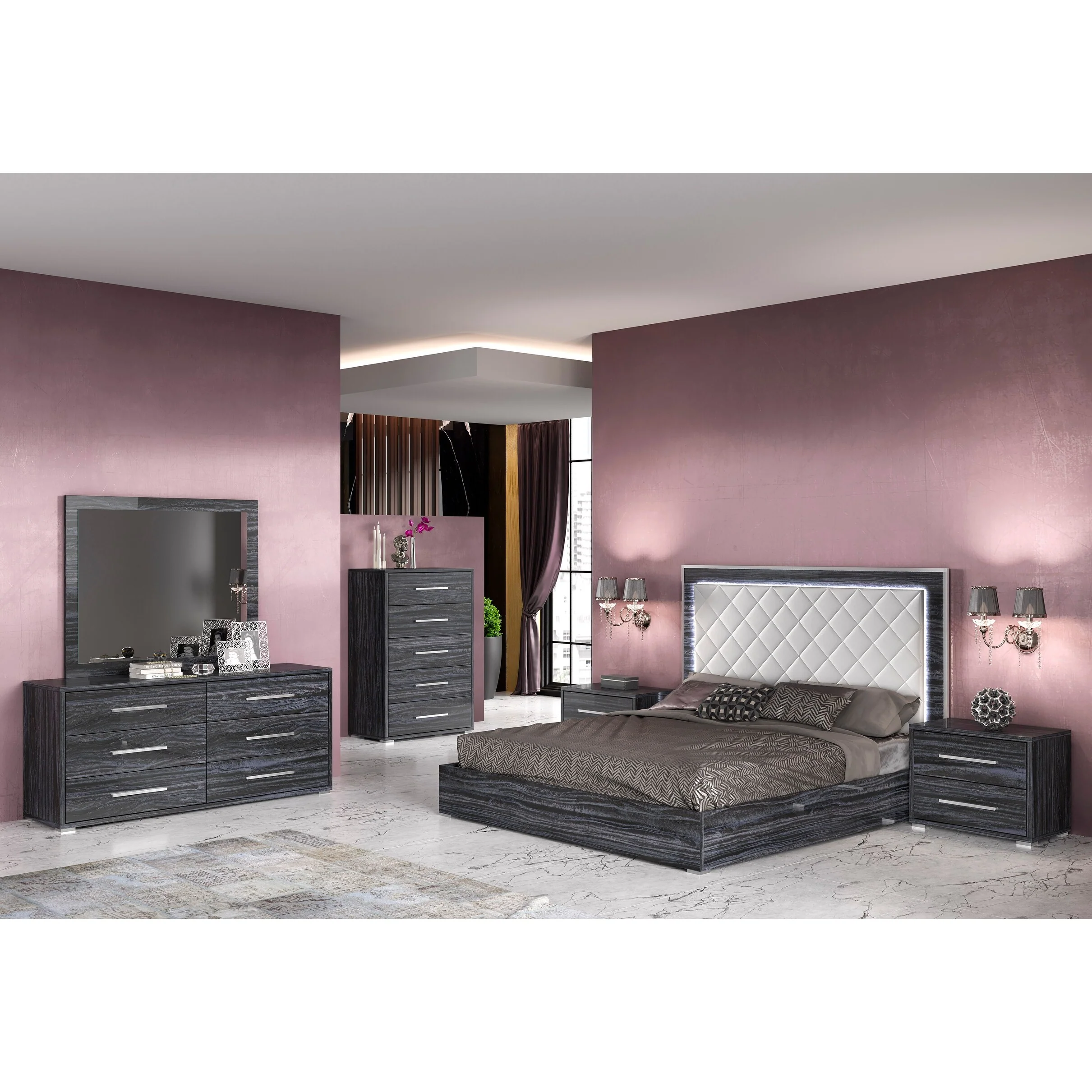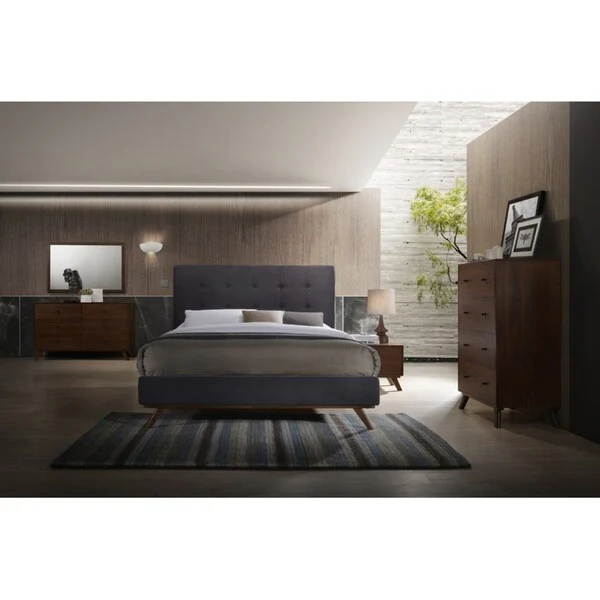 Modrest Addison Mid-Century Modern Grey & Walnut Bedroom Set