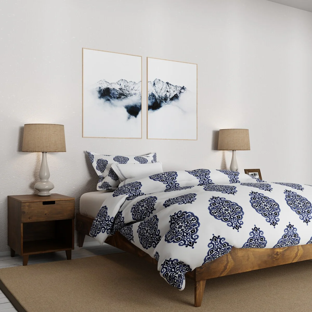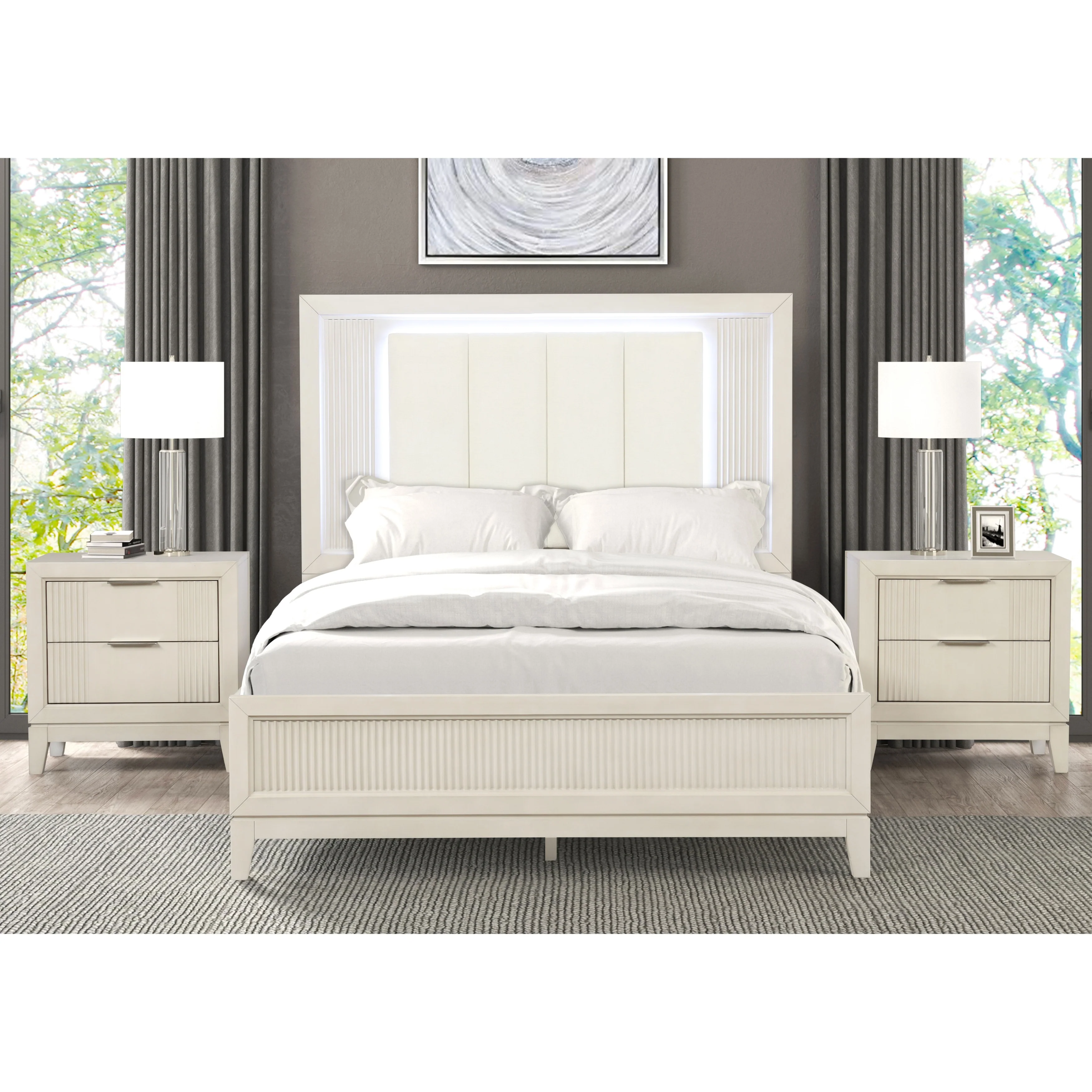 Render Wall Mount King Headboard and Modern Nightstands