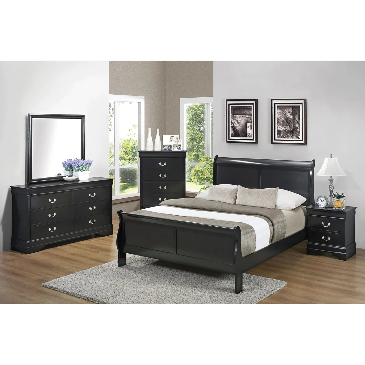 Graffenstaden Black 2-piece Sleigh Bedroom Set with Dresser