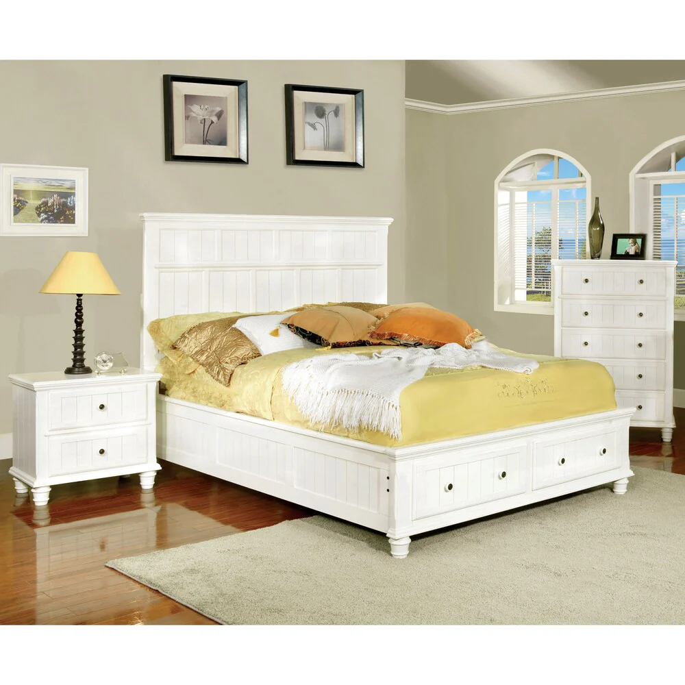 Danica Vintage White 3-piece Panel Bedroom Set with 2 Nightstands