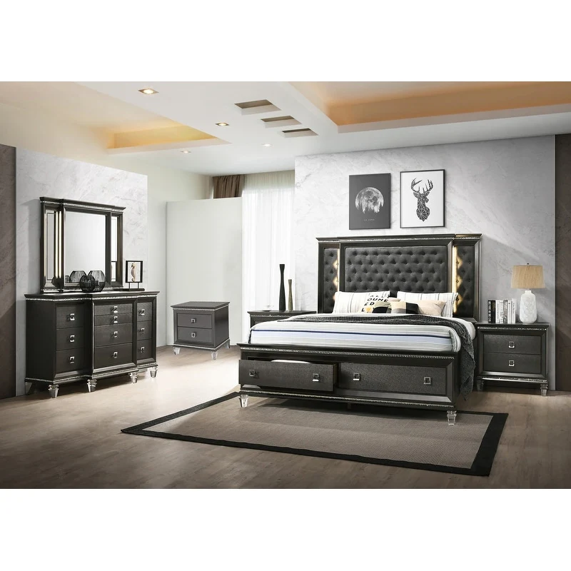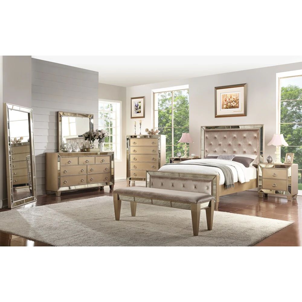 Abbyson Chateau Mirrored Tufted 8 Piece Bedroom Set