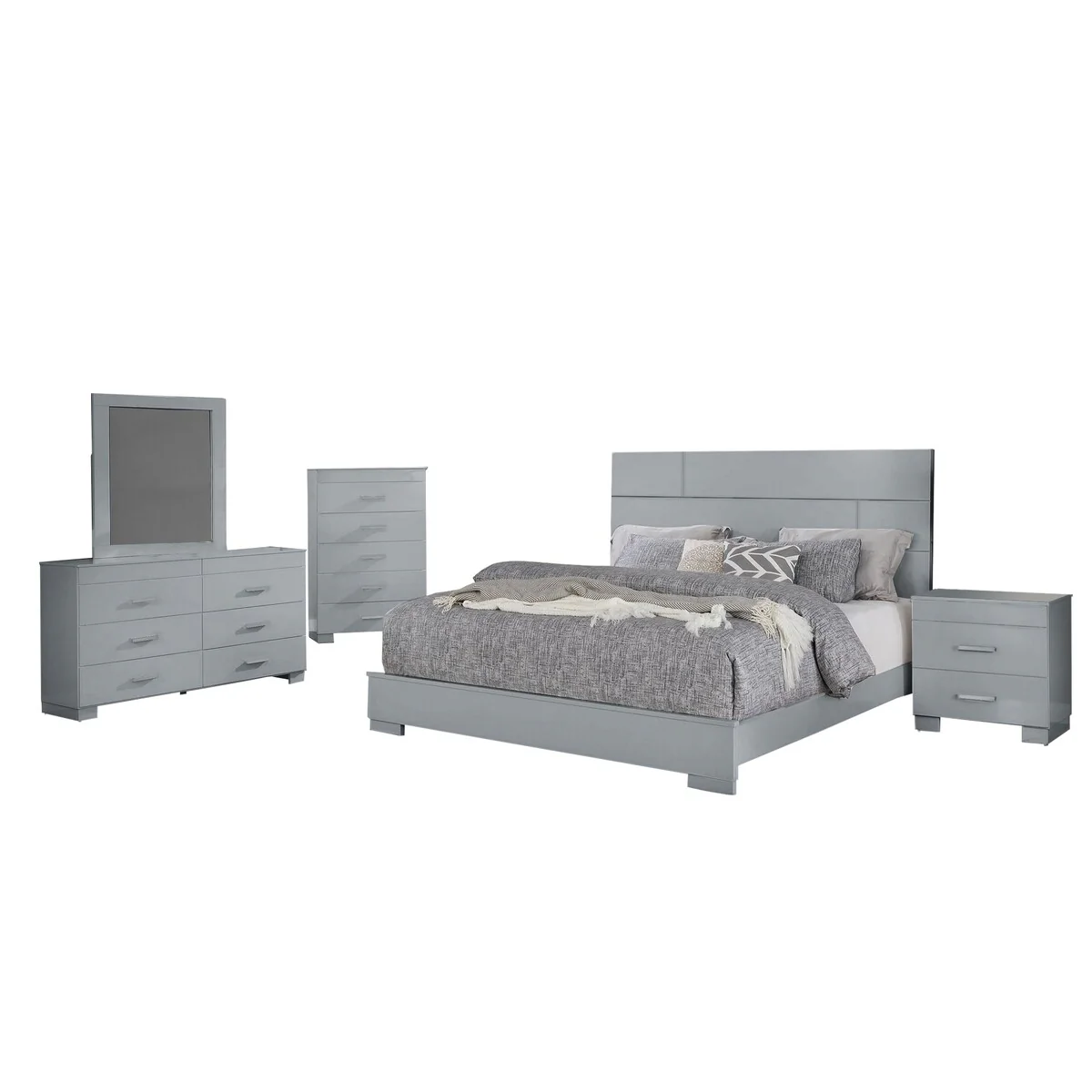 Somette 4-piece Devlin Grey Glossy King-size Bedroom Set