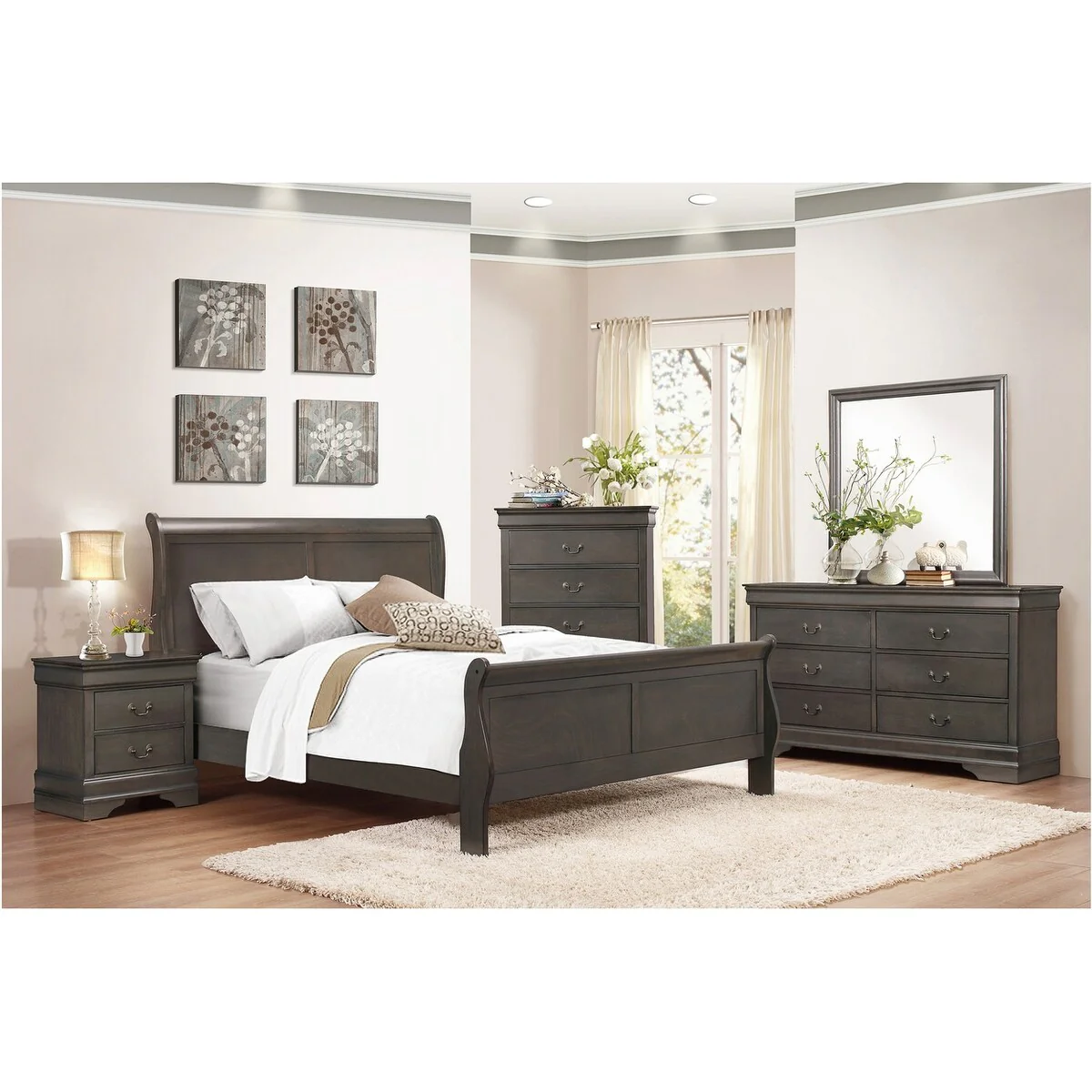 Monty 3 Piece Stained Gray Modern Traditional Sleigh Bedroom Set