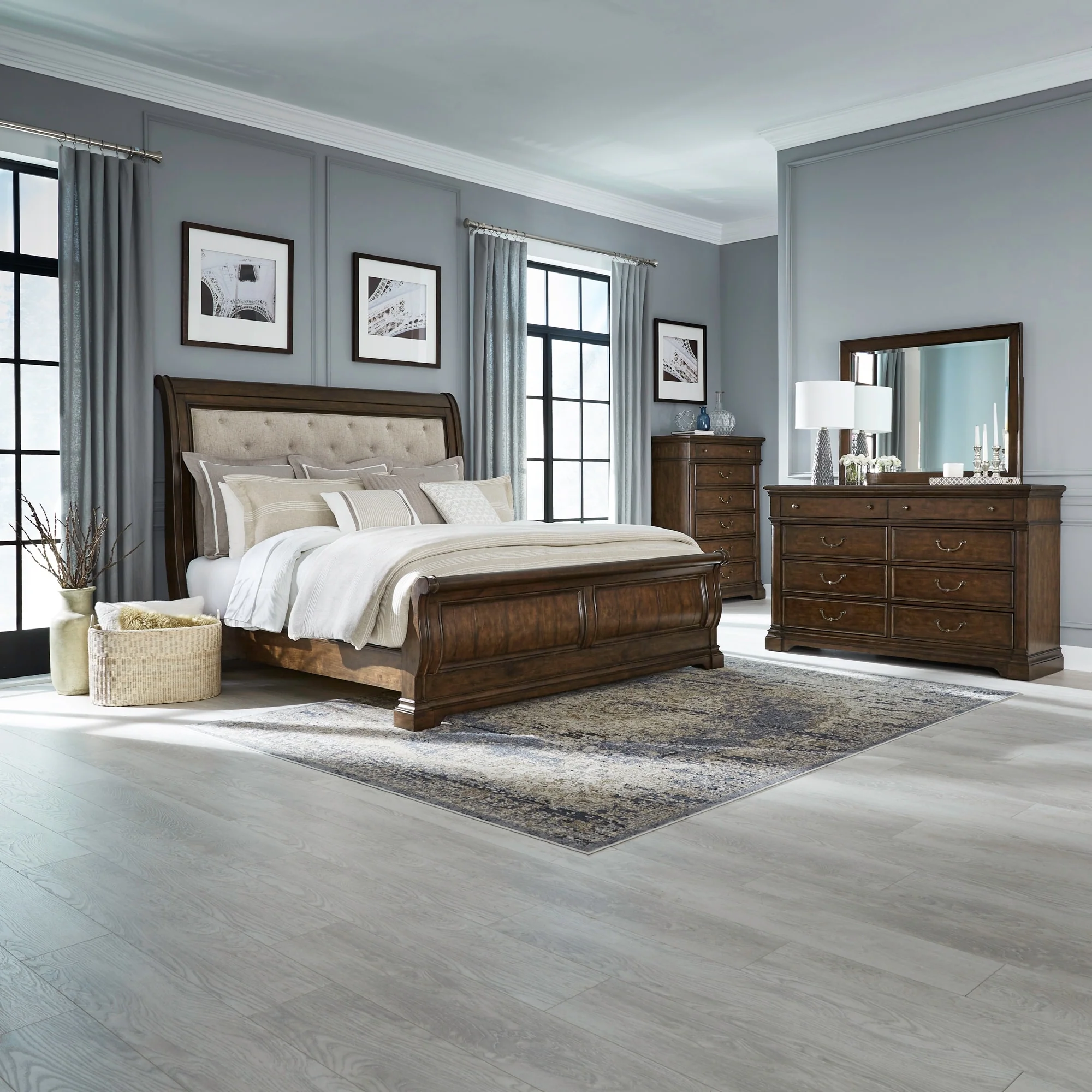Contemporary Upholstered Sleigh Queen 5 Piece Set.