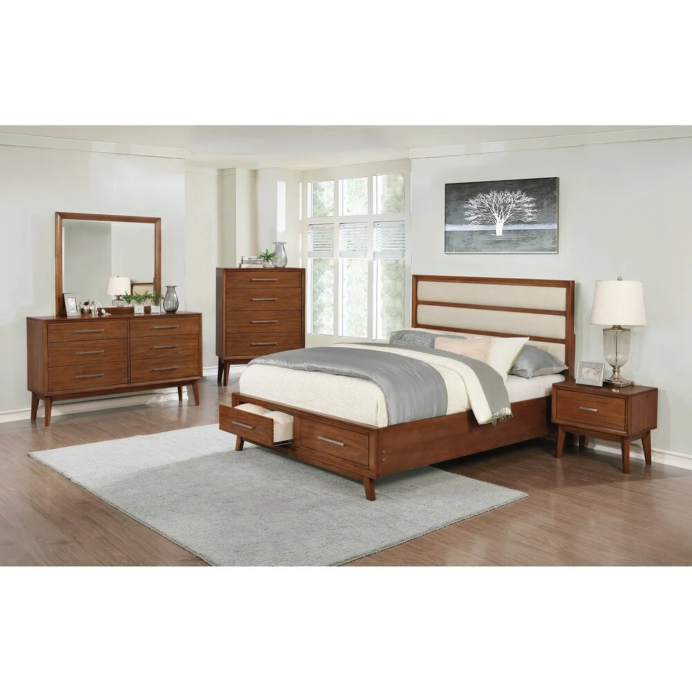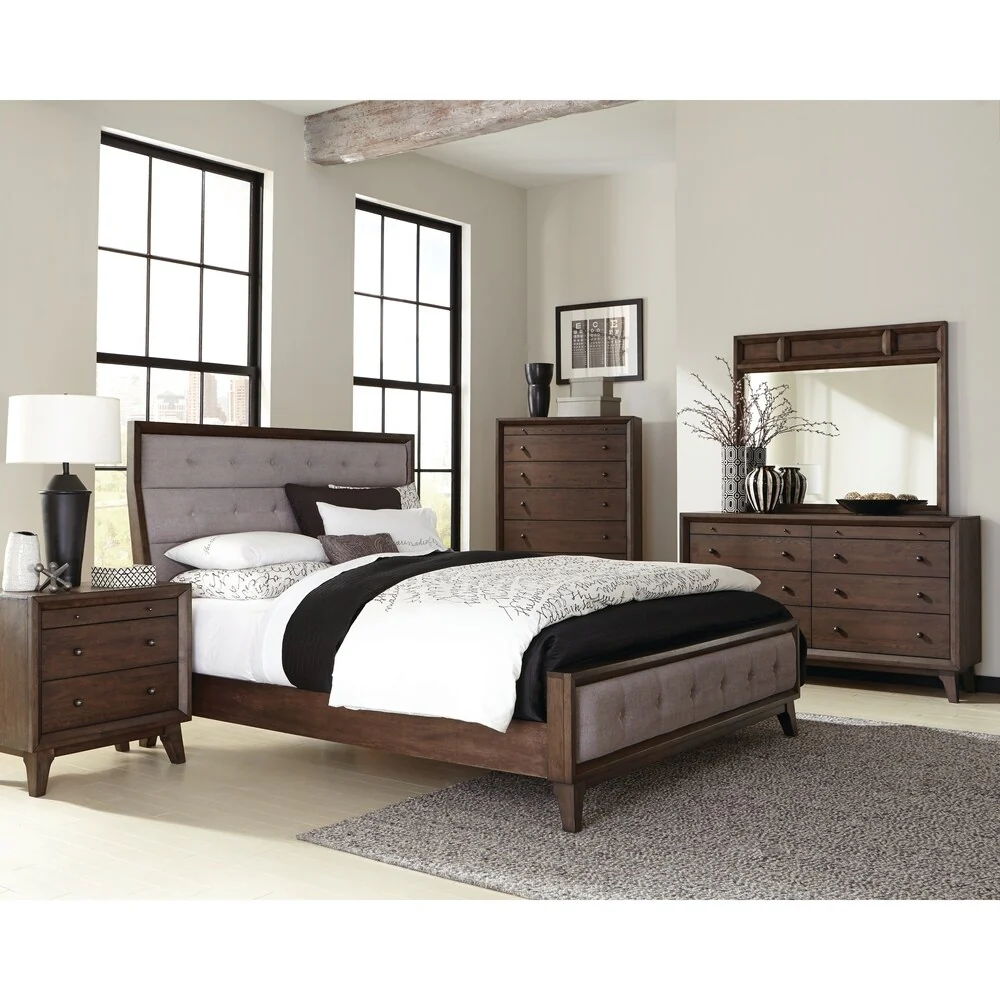 Bingham Retro-modern Brown 4-piece Upholstered Bedroom Set